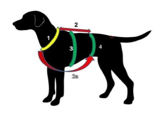 3. meet borstomvang, breedste deel borst(niet gelijk achter voorpoten)