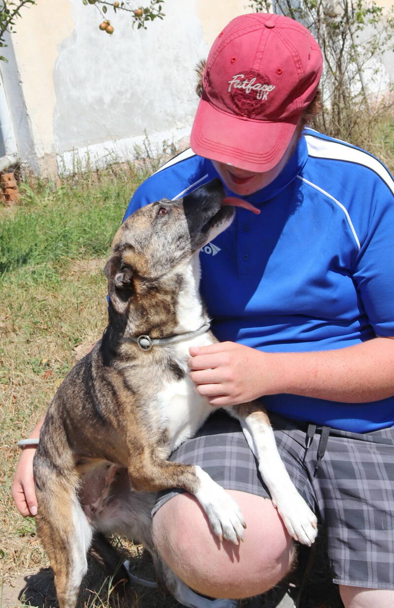 Op 19 oktober 2016 waren Rumen en Liam op de terugweg vanuit Plovdiv waarzij bij de dierenkliniek waren geweest. Zij zagen langs de drukke weg ineens pups lopen. Ze zijn gelijk gestopt om ze te helpen, terwijl ze de pups in de auto aan het doen waren verscheen plotseling de moeder. Zij is heel erg vriendelijk en was blij om ons te zien. Er was helemaal geen probleem ze konden haar optillen en hebben haar ook in de auto gezet. Na nog even gecheckt te hebben of er niet meer pups in de omgeving waren zijn ze op weg gegaan naar de RSDR shelter.