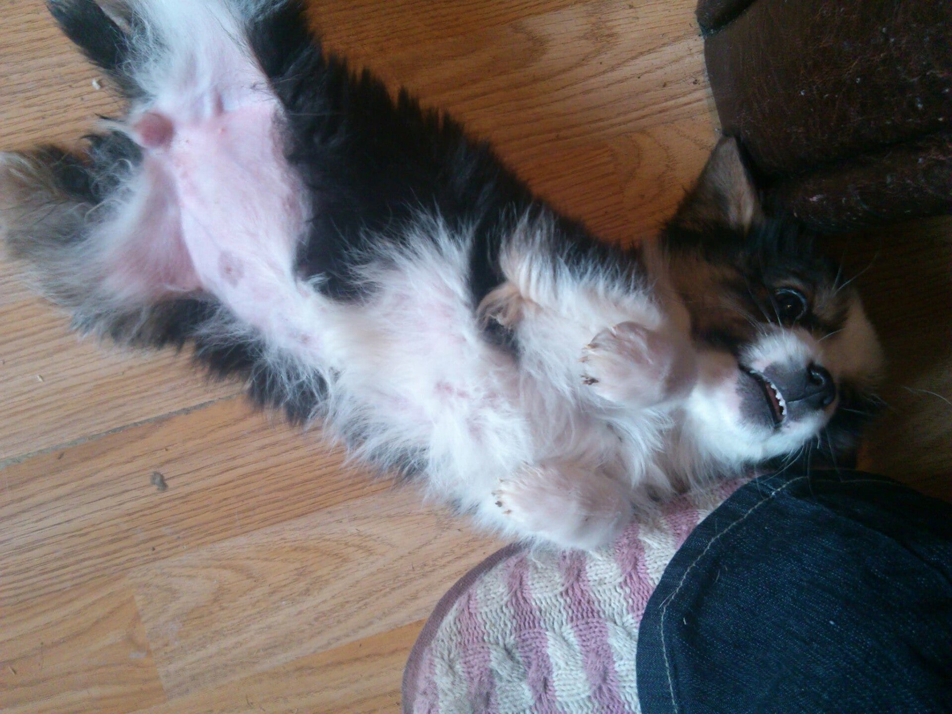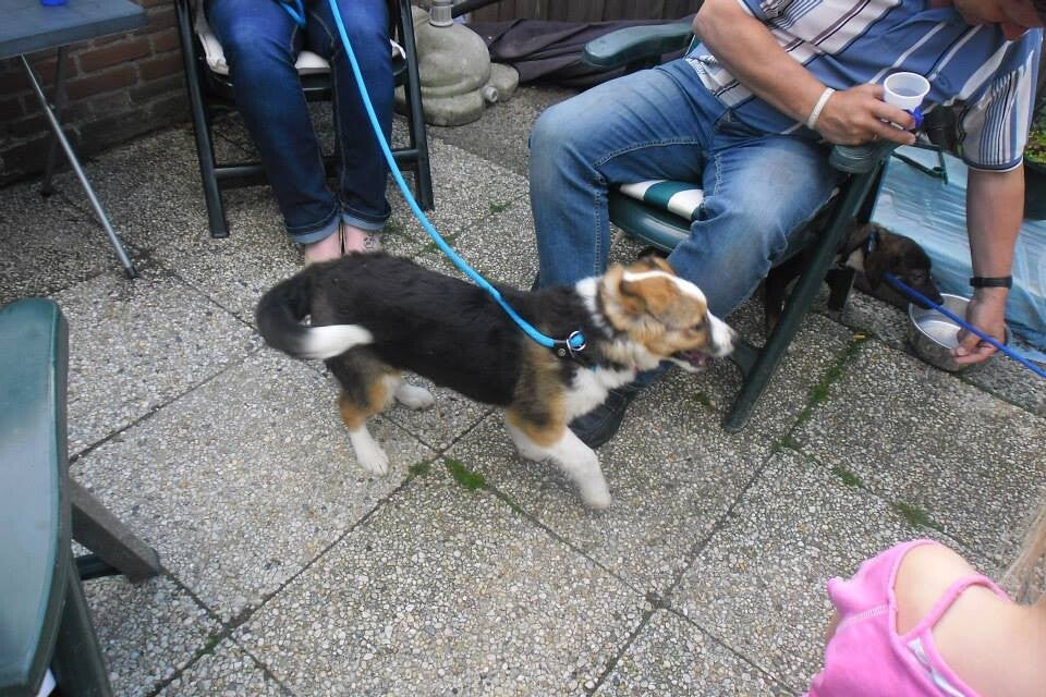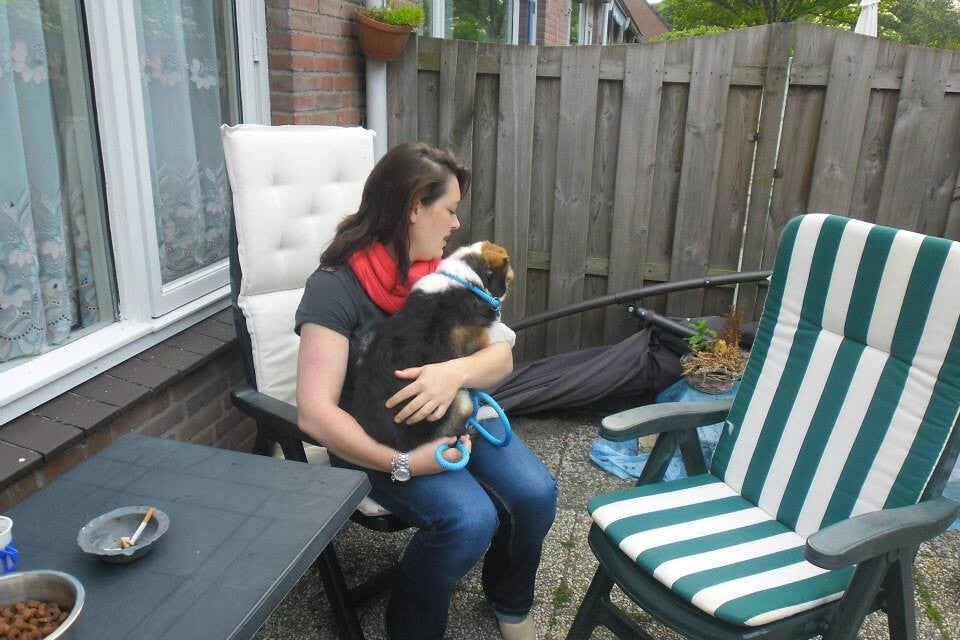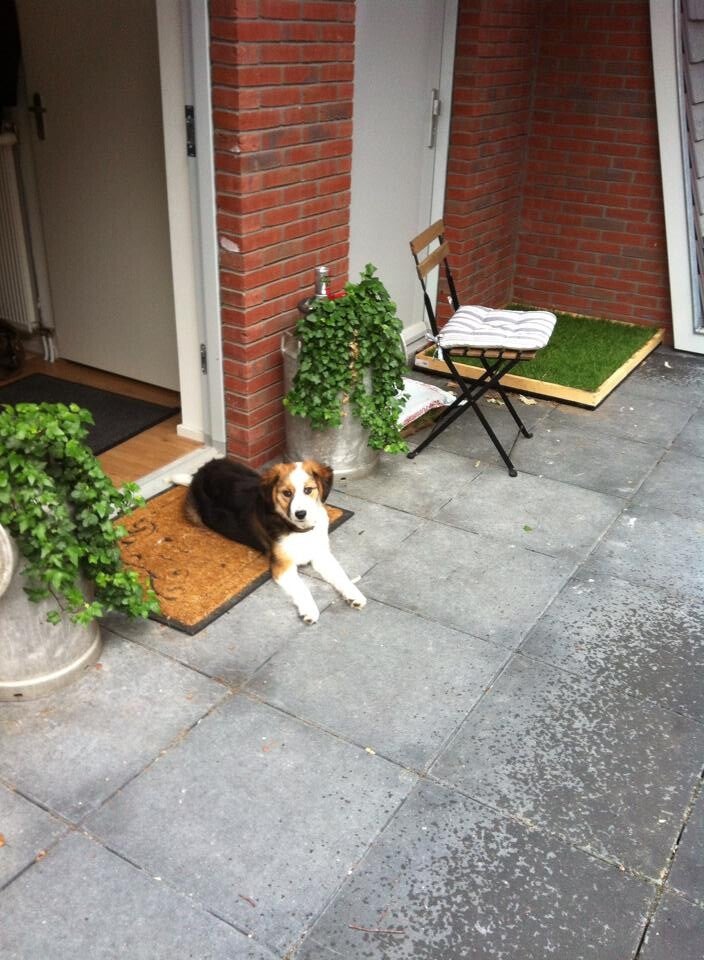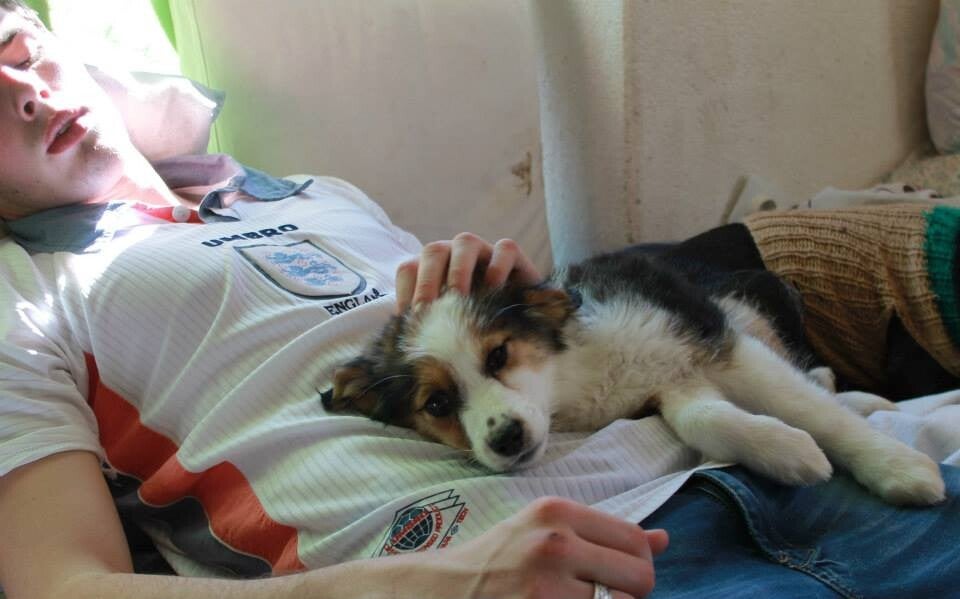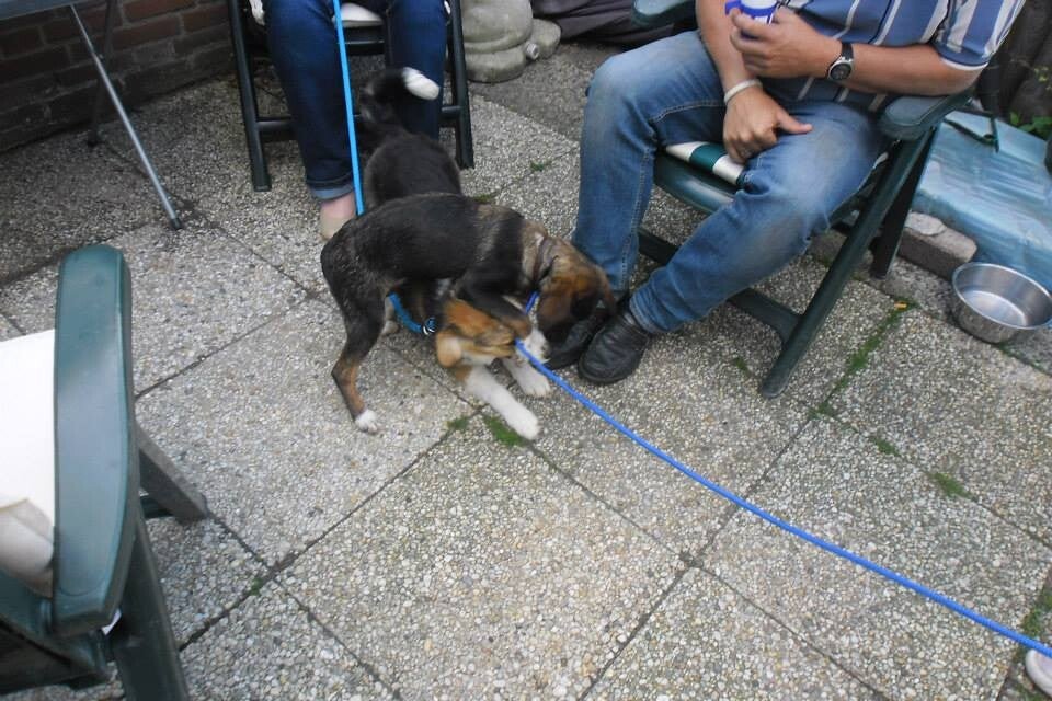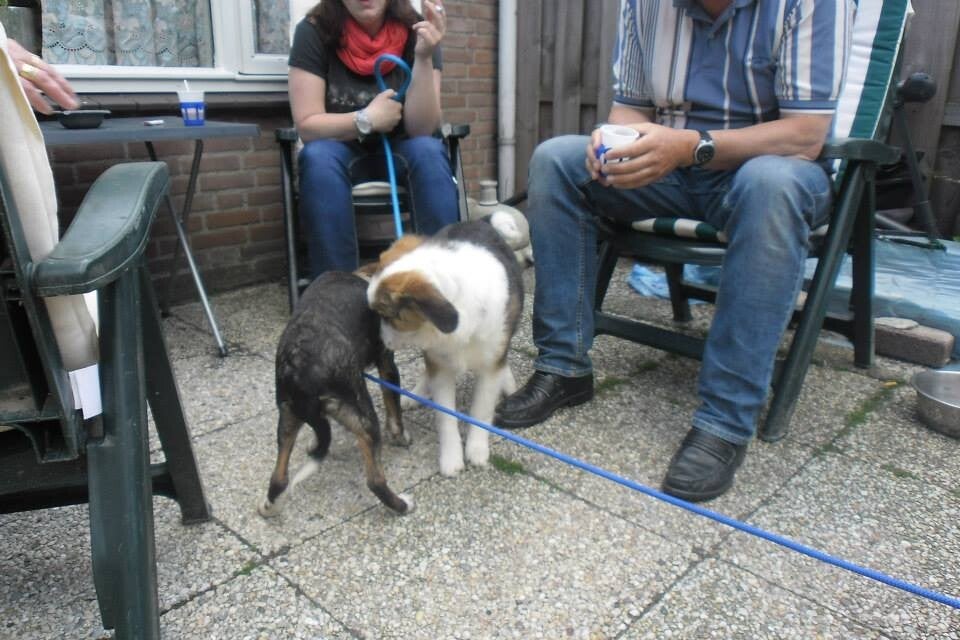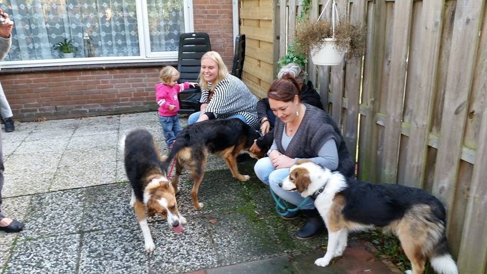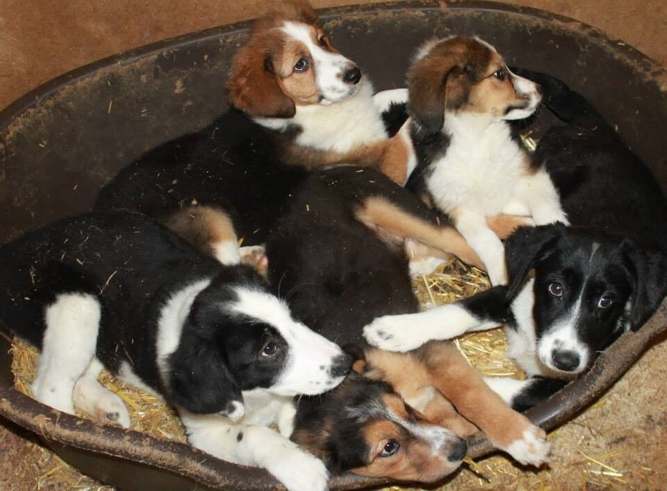 Op zaterdag 18 januari 2014 vonden we een doos die was gedumpt in de verste hoek van de herdenkingstuin bij de opvang. Een paar dagen eerder waren de jongens bezig met het opruimen van de tuin toen waren ze er nog niet, dus we denken dat de doos donderdagnacht is gedumpt, te oordelen naar de staat ervan. De honden van het asiel bleven blaffen op het uitren terrein en wilden niet binnenkomen. Harri, een van onze werkers, liep rond om te zien of er iets was dat de honden afleidde en hij vond 5 uitgehongerde pups in een doos. De pups waren erin geslaagd zich een weg naar buiten te klauwen. De pups zijn door Diane naar het huis gebracht want in de opvang was geen plek.