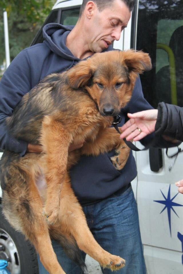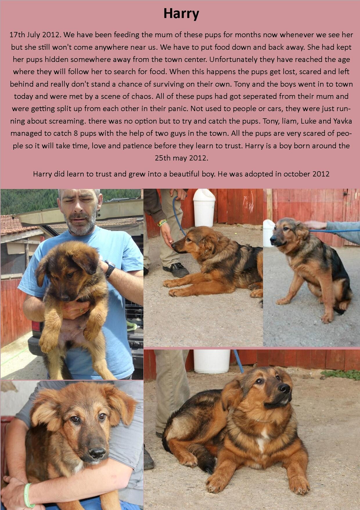 Harry is met nestgenootjes gevangen in het centrum van Rudozem op 17 juli 2012. De moeder van de pups is een straathond