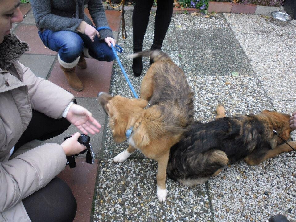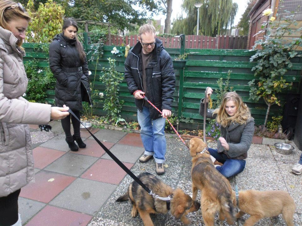 De pups volgden haar naar het centrum konden haar niet bij houden en rende in paniek door het centrum.