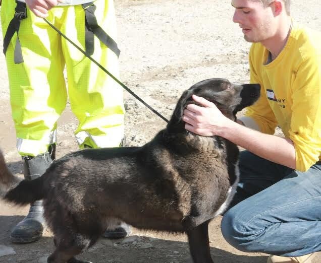 Hij rende naar ons toe, zodra wij zijn aandacht trokken, hij liep heel erg mank.