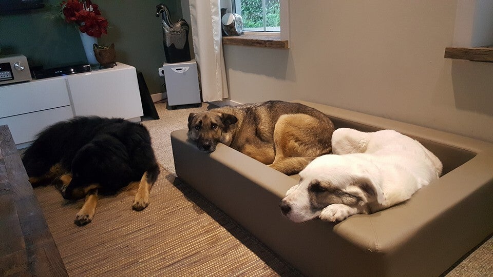 Zij is gered door RSDR in 2011, ze zat vanaf pup al vastgeketend aan een ketting achter een winkel voor bewaking, zij was extreem mager en was heel zwak.