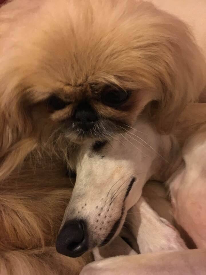 Lulu was haar hele leven gebruikt als fokteefje. Toen ze bij RSDR kwam was je ongeveer 9 of 10 jaar jaar oud, ze was te oud en aan iemand gegeven, de persoon waar ze aan was gegeven kon haar niet houden en wilde haar op straat dumpen.