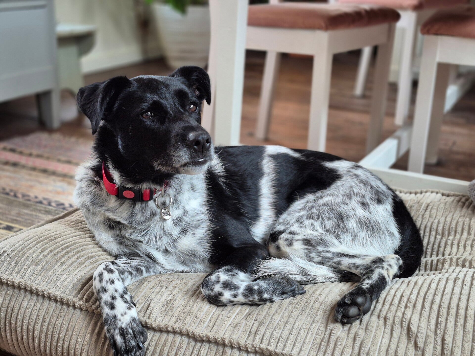 op 15 april 2019 zat Megz ineens in de tuin bij de woning van Tony en Diane. Aangezien de tuin volledig is afgesloten en omheind, moet ze door iemand 's nachts of 's morgensvroeg over het hek zijn gegooid. Ze was in goede conditie, niet mager en had geen vlooien dus is duidelijk van mensen geweest.