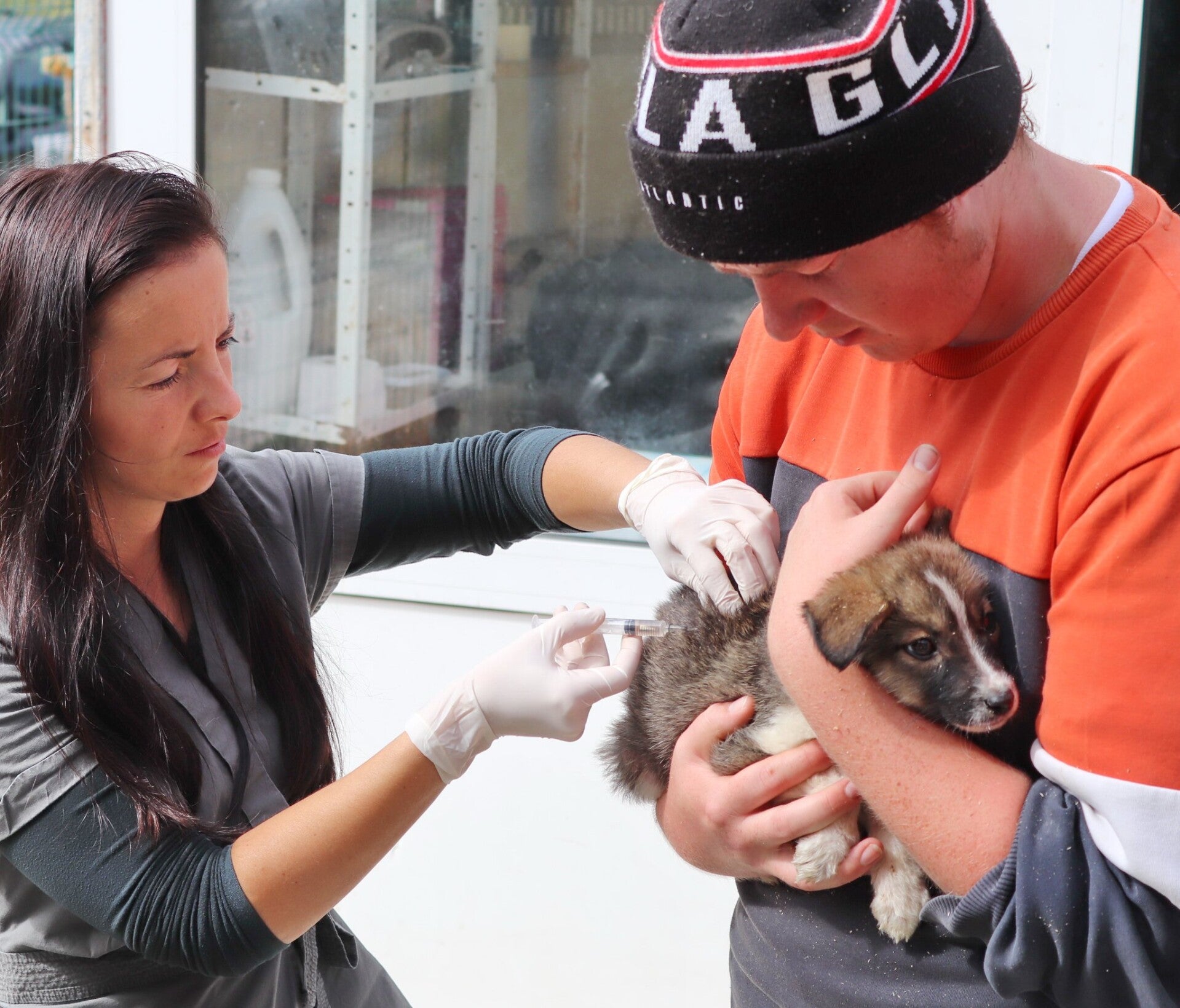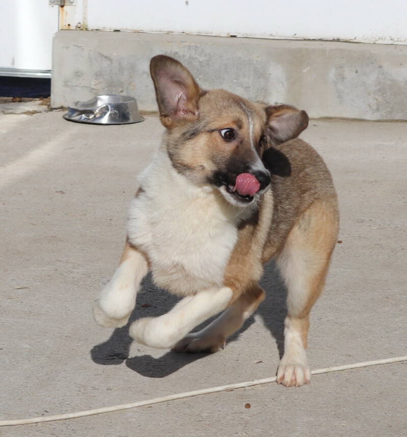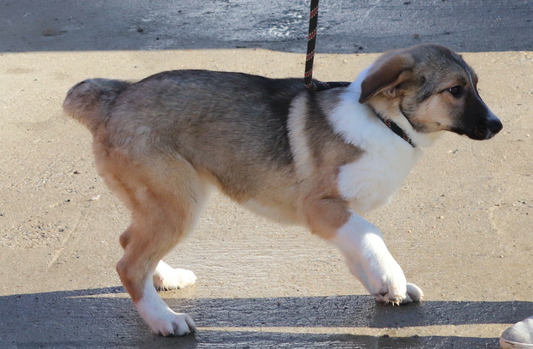 Op 23 september 2019 werden vier pups gedumpt bij de shelter. Mellow is één van deze pups.