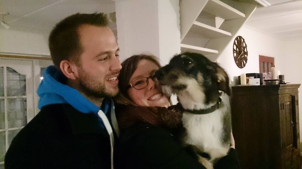 Op 30 augustus 2014 zag Luke twee pups rennen door de straat voor het huis.