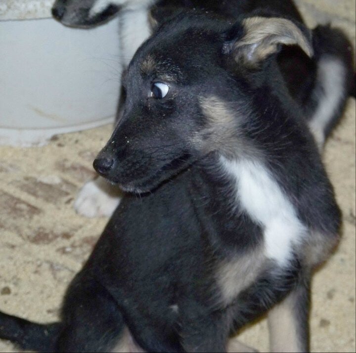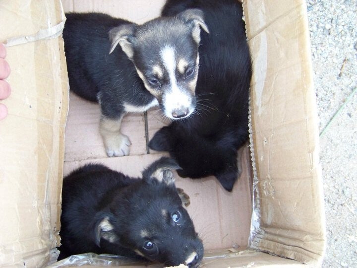 Georgie en zijn broertje en zusje werden in een kartonnen doos voor de opvang gedumpt. Helaas is het zusje overleden.