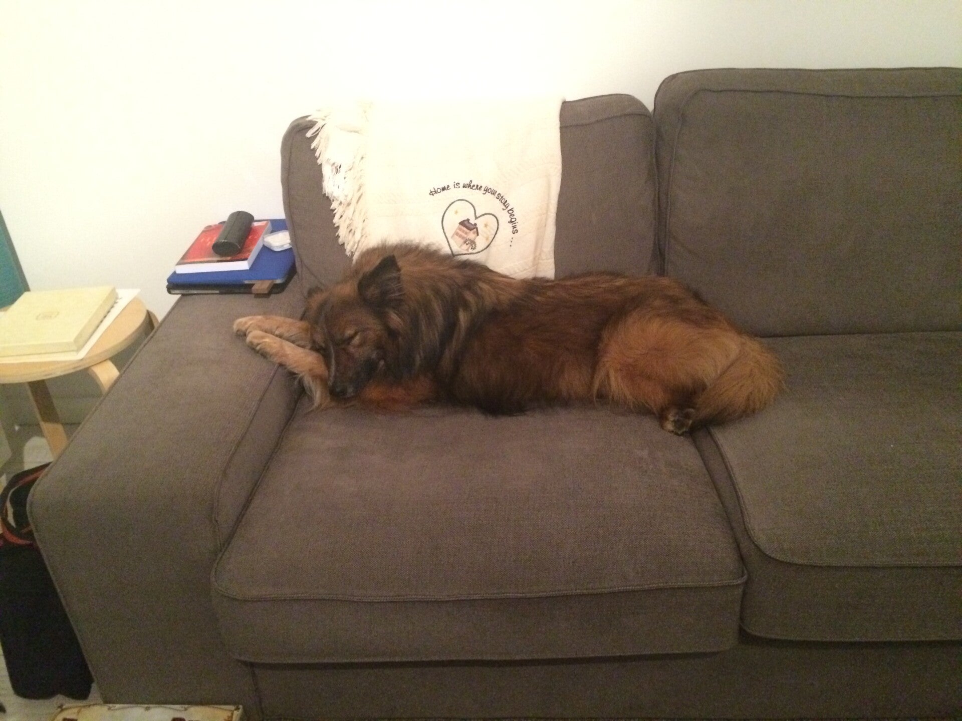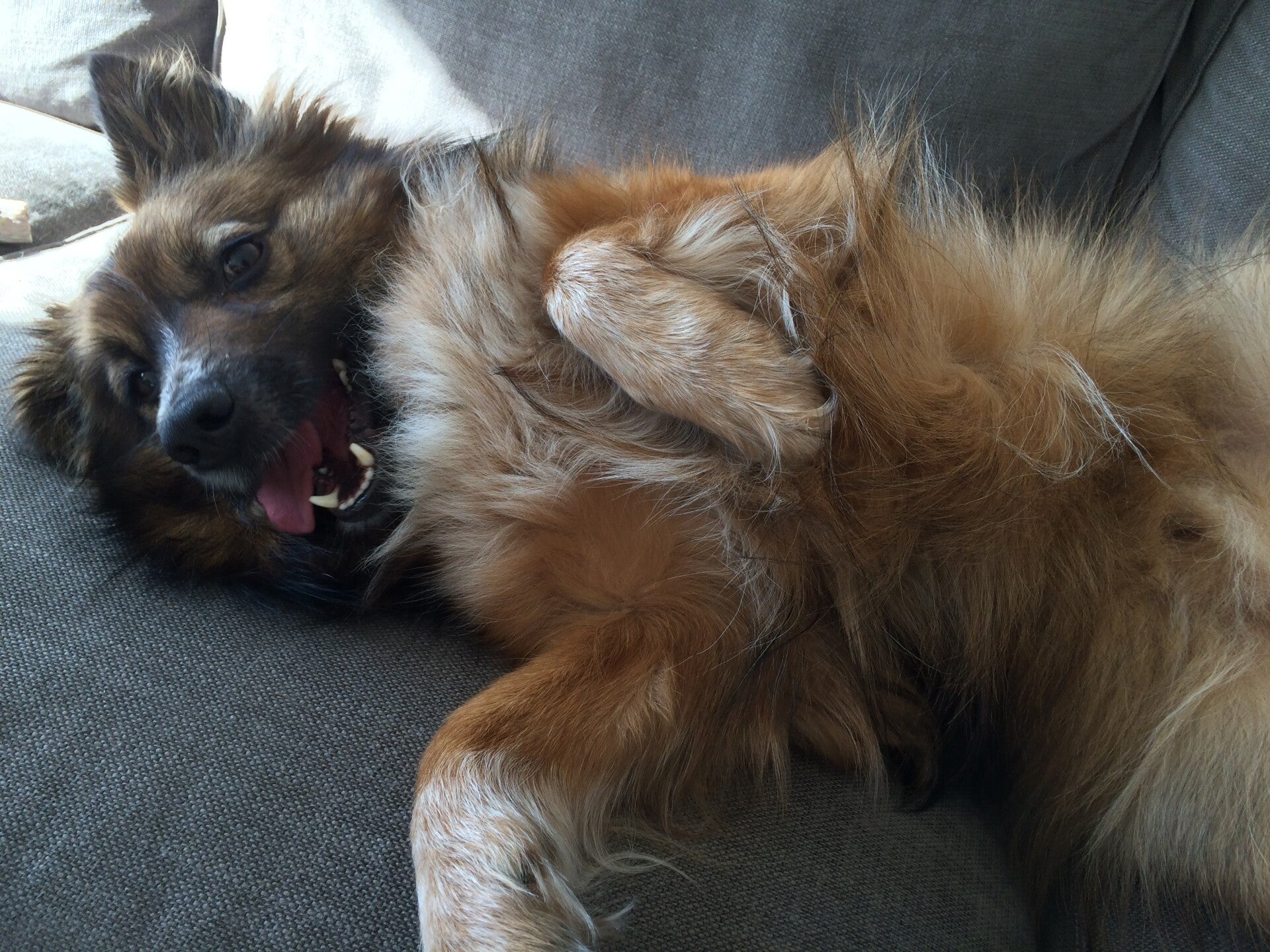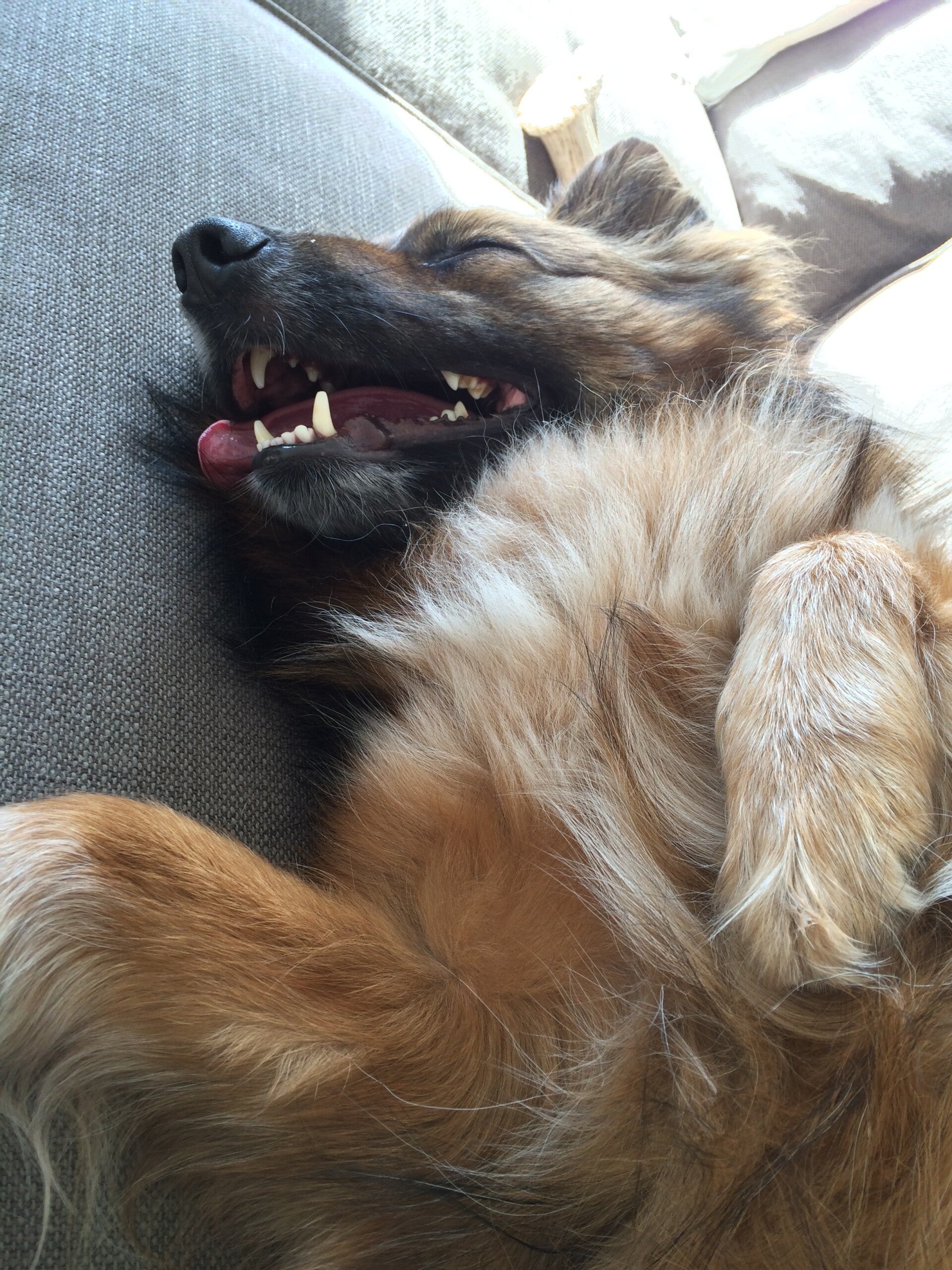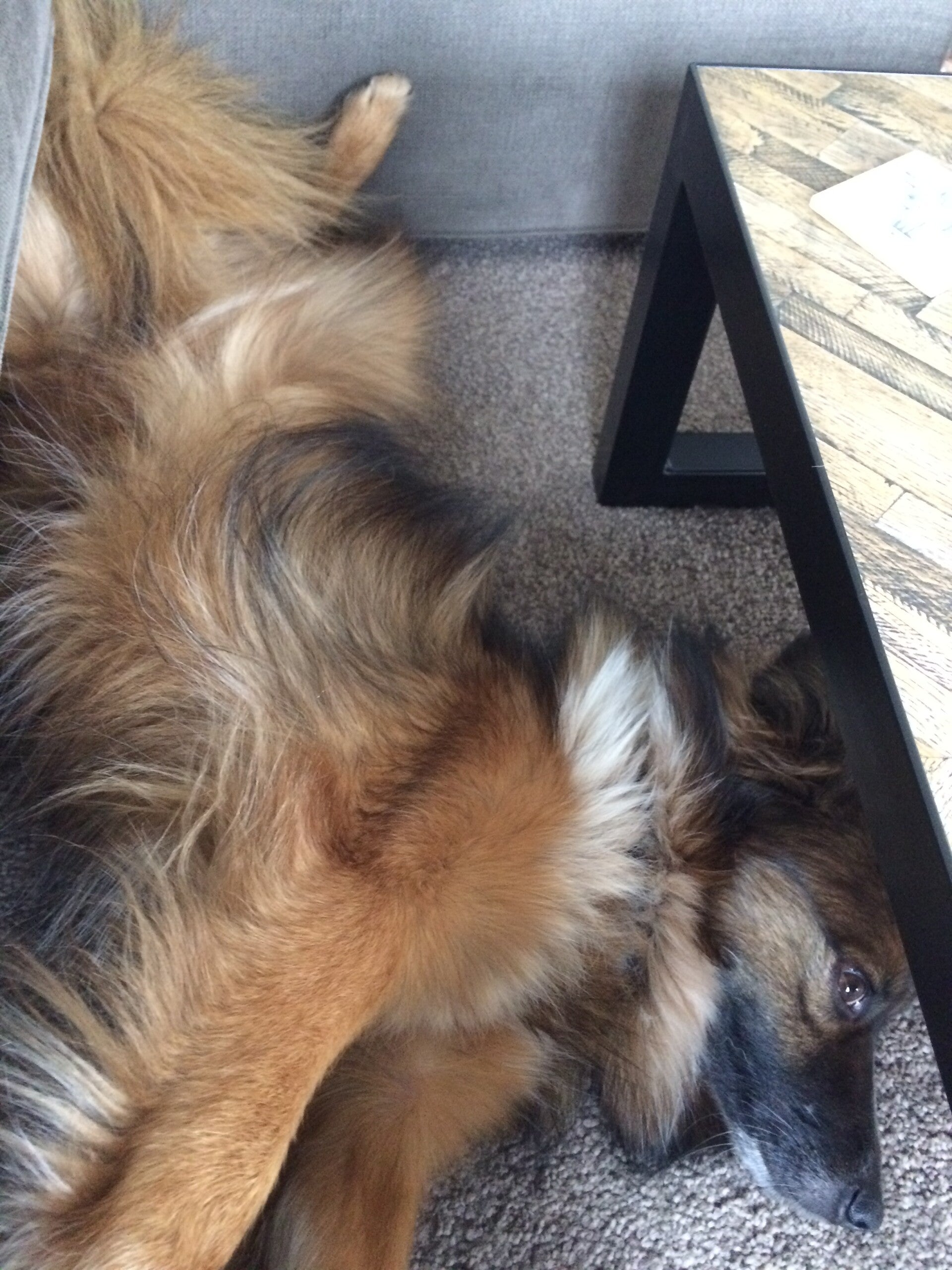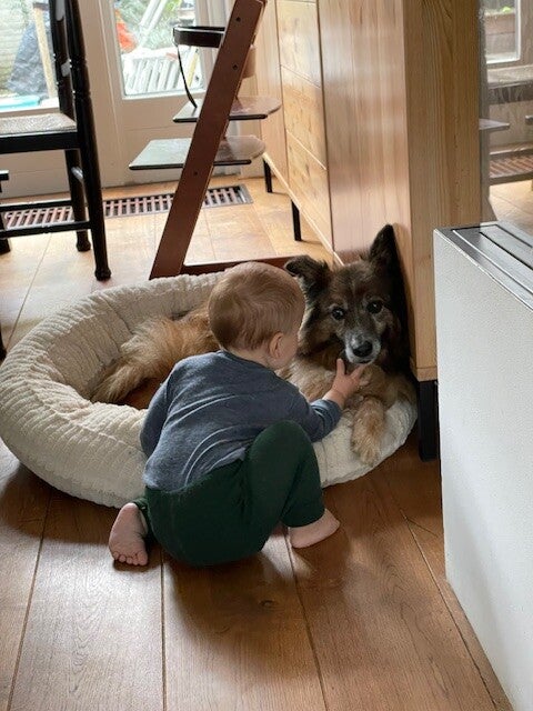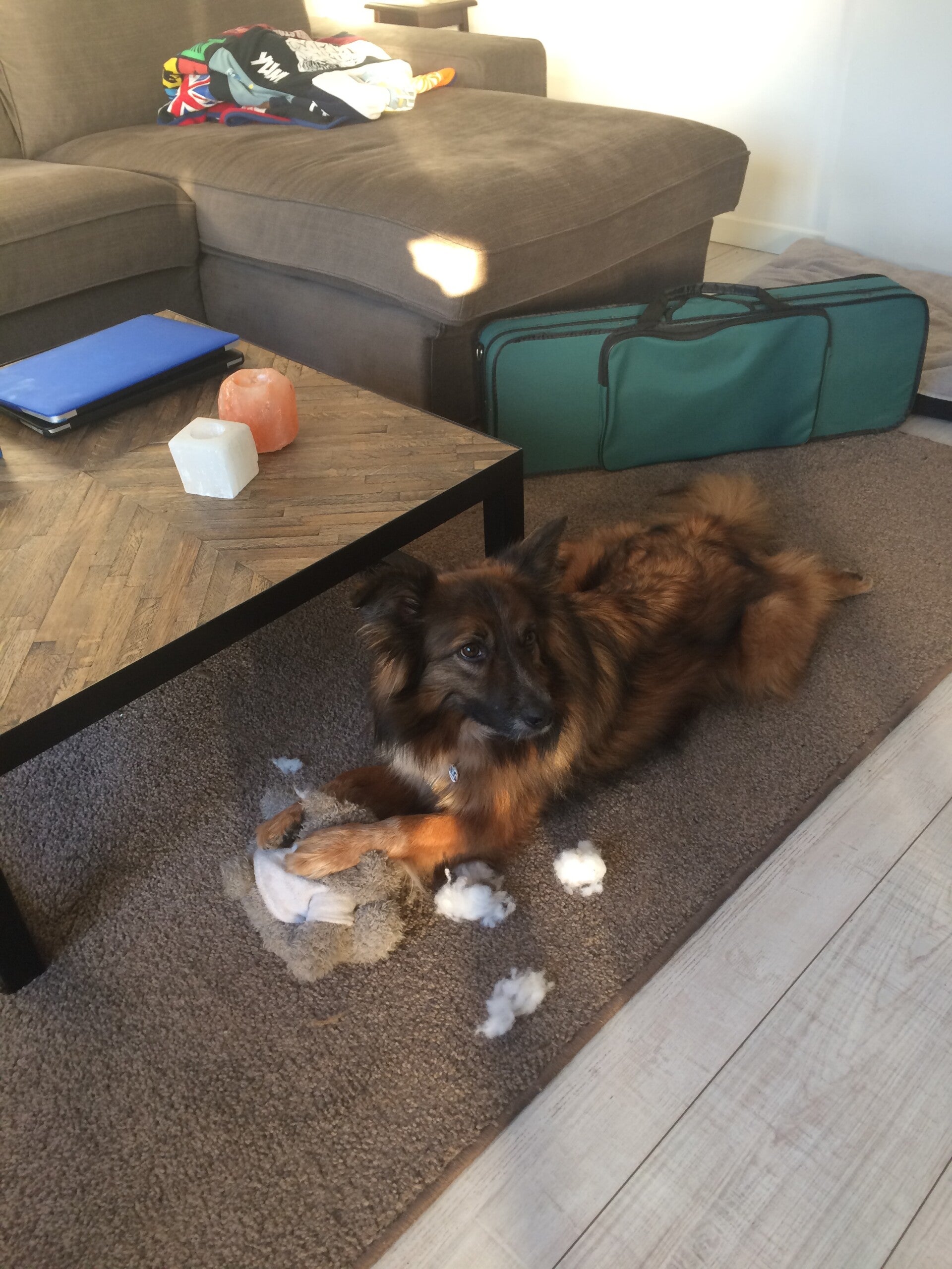 hongerig en op zoek naar restjes, maar dook ineen als mensen voorbij liepen. Hij was doorweekt er was duidelijk iets over hem heen gegooid. Toen hij eenmaal door had dat hij voor Tony geen angst hoefde te hebben sprong hij in de auto en nestelde zich op de achterbank, hij was een hele vriendelijke pup.