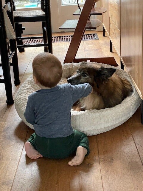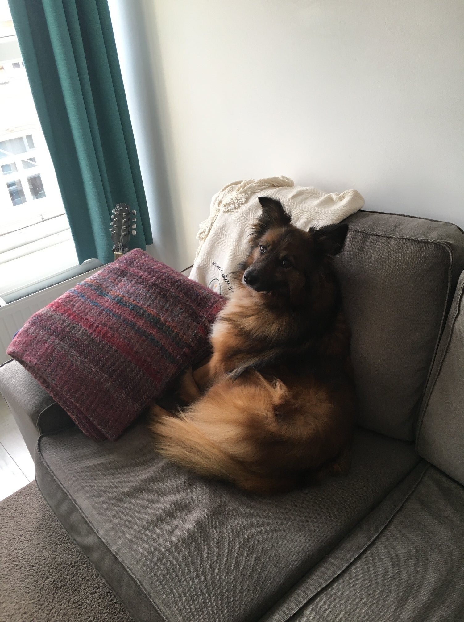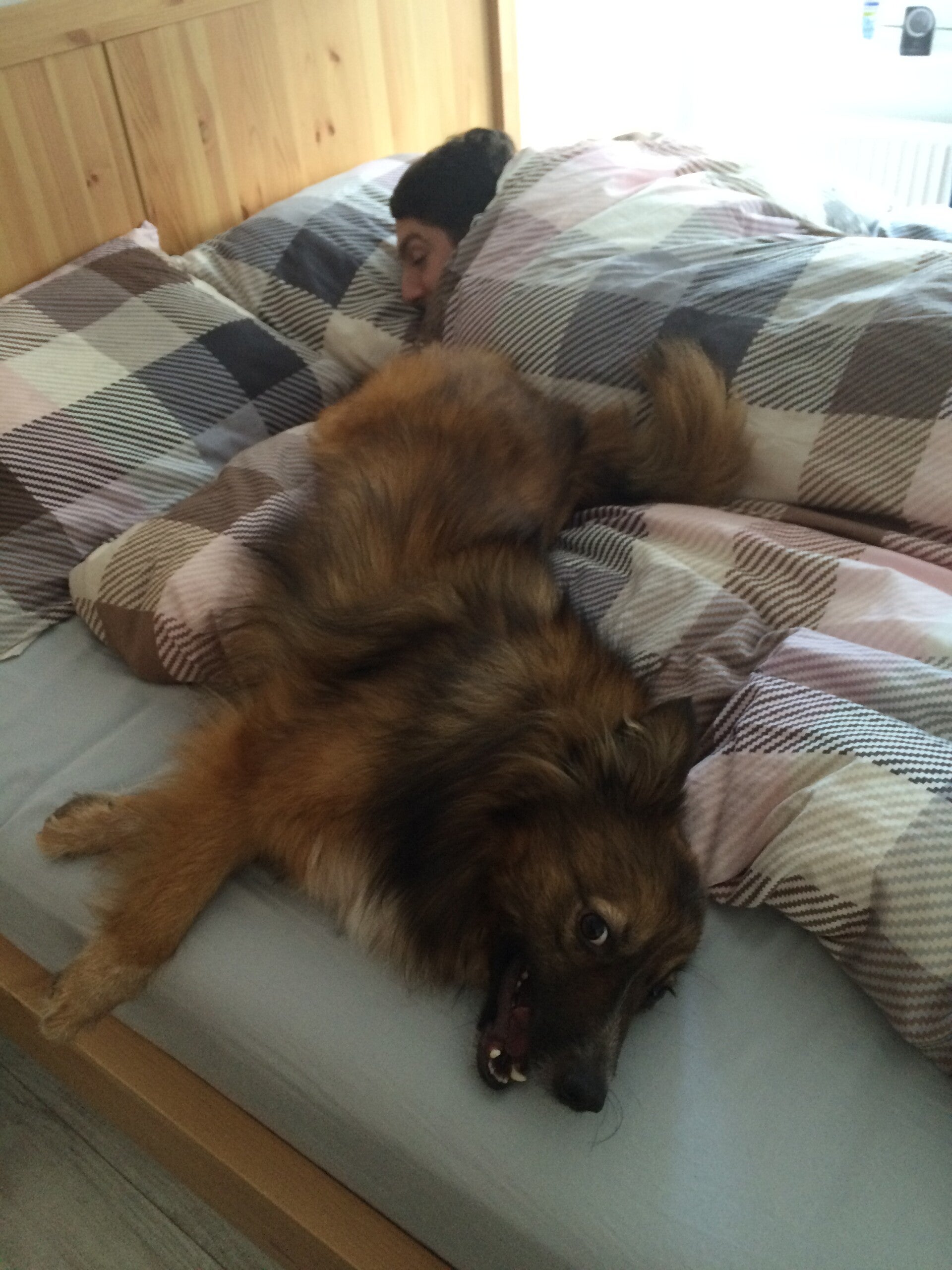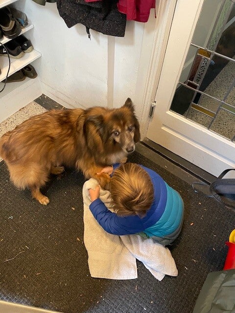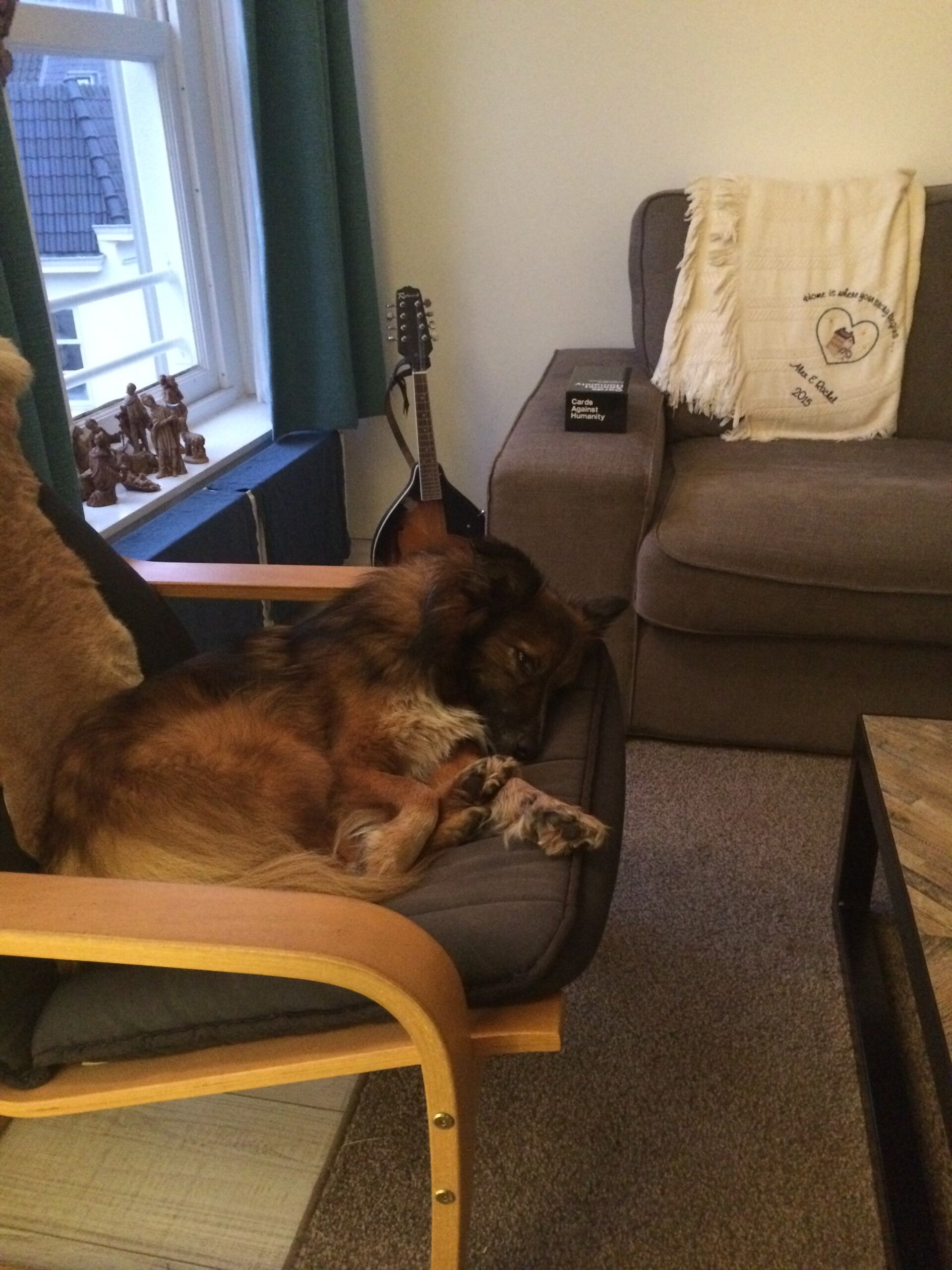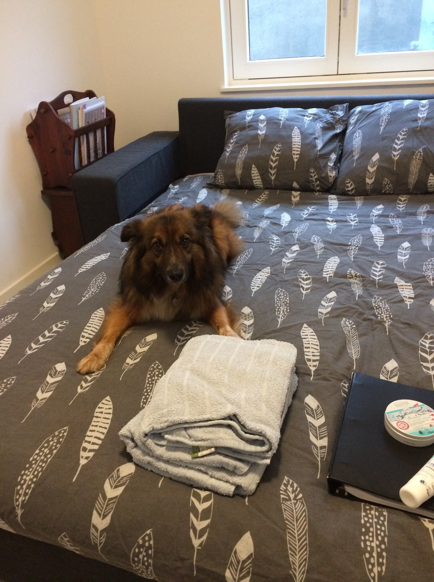 hongerig en op zoek naar restjes, maar dook ineen als mensen voorbij liepen. Hij was doorweekt er was duidelijk iets over hem heen gegooid. Toen hij eenmaal door had dat hij voor Tony geen angst hoefde te hebben sprong hij in de auto en nestelde zich op de achterbank, hij was een hele vriendelijke pup.
