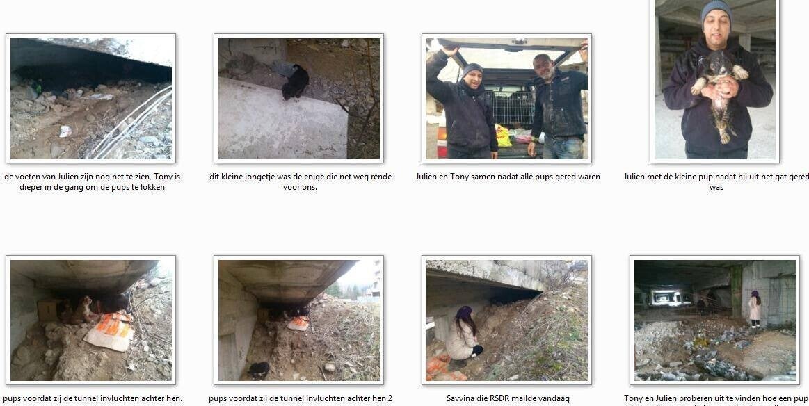 Op 21 januari 2013 gevonden onder een viaduct bij het ziekenhuis in Smolian. De redding was een hele gevaarlijke actie omdat de pups