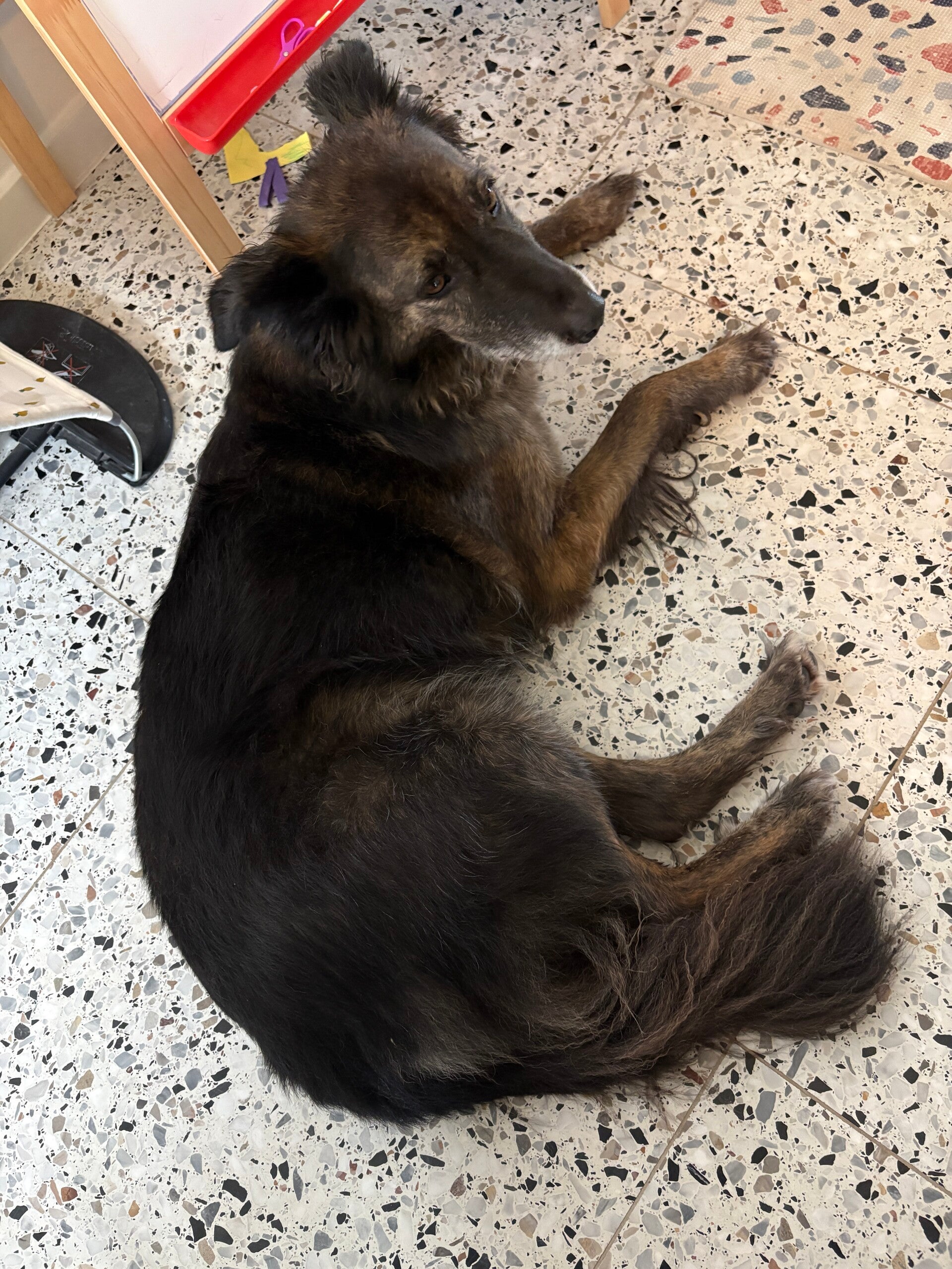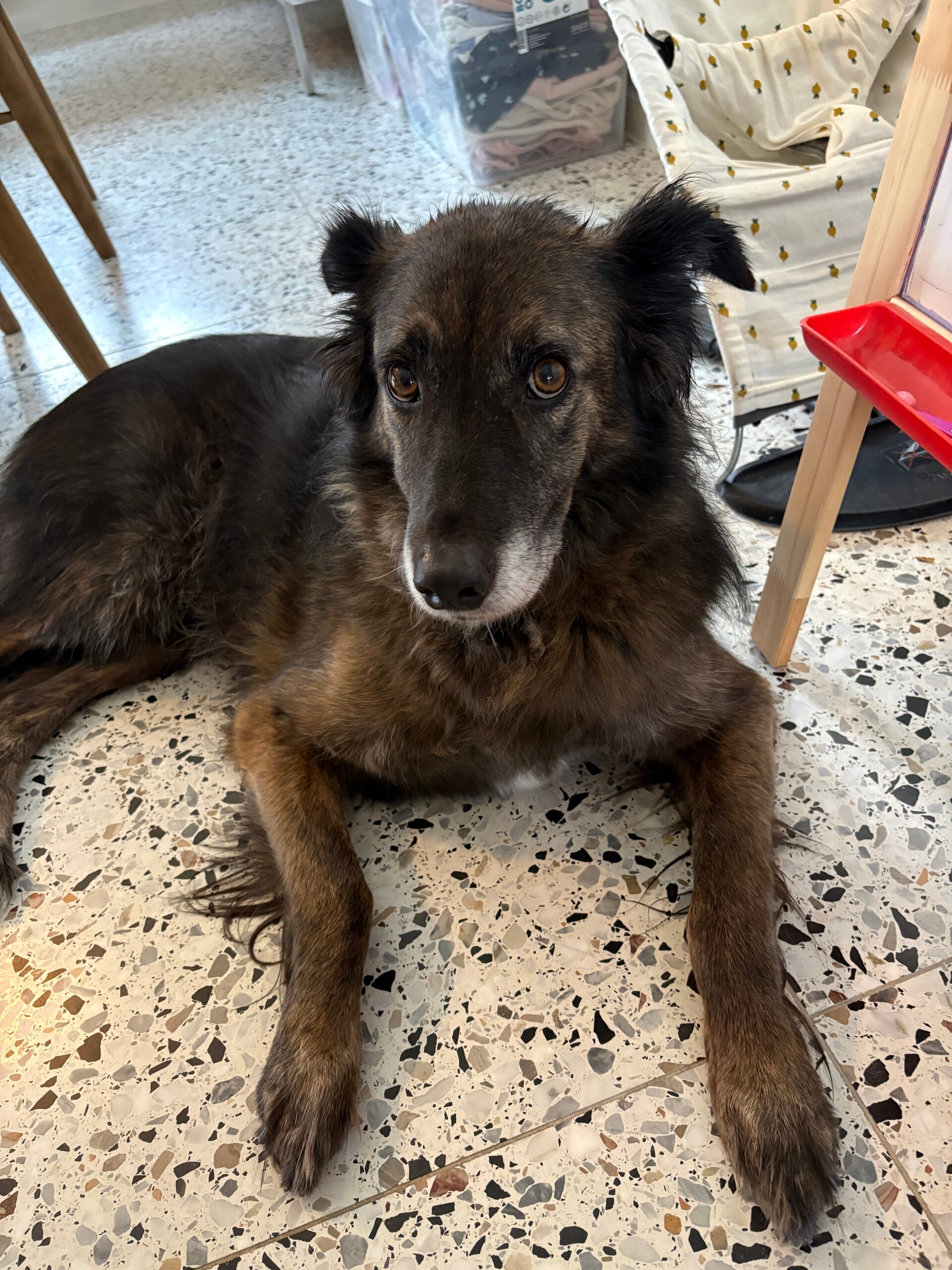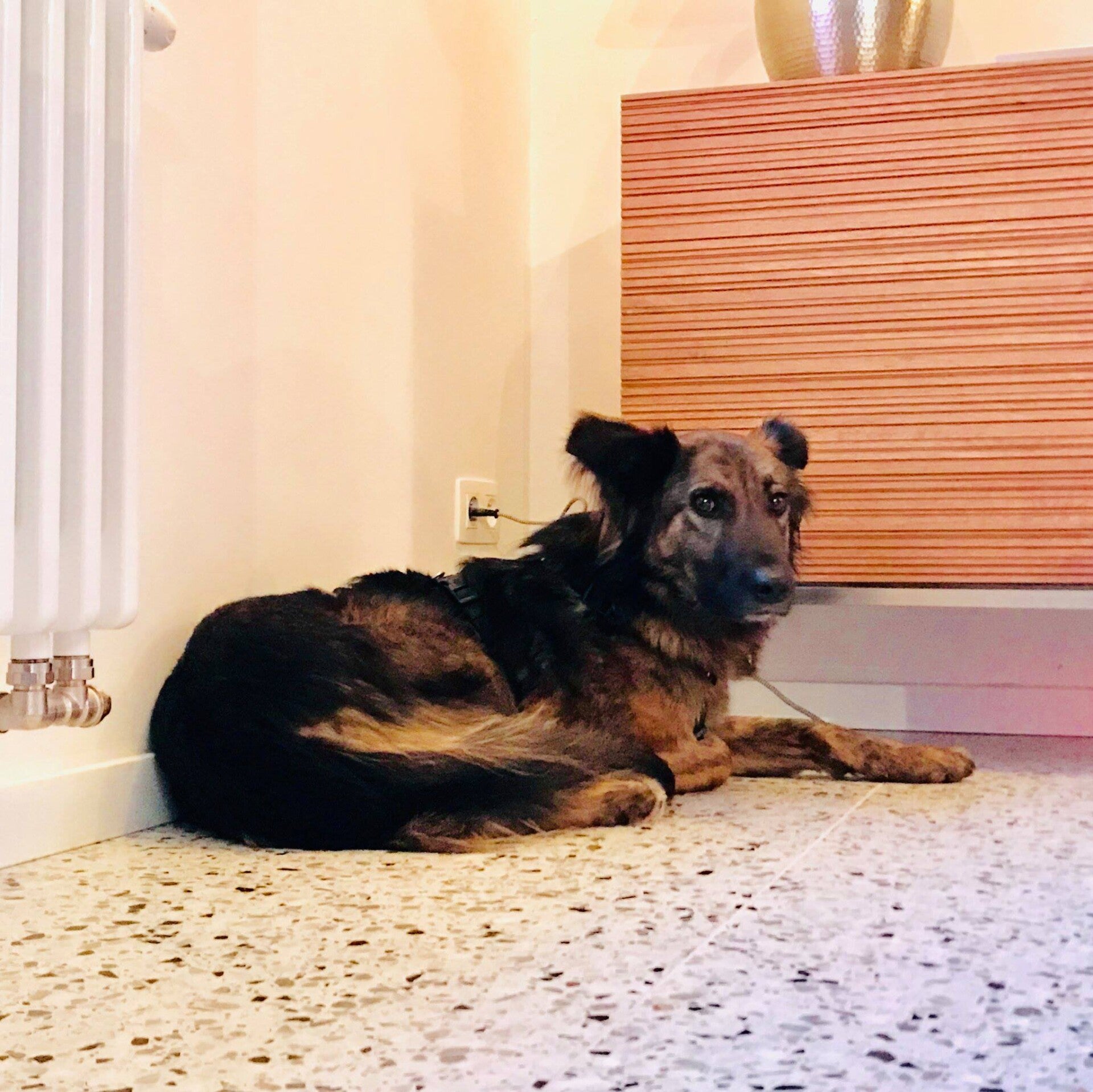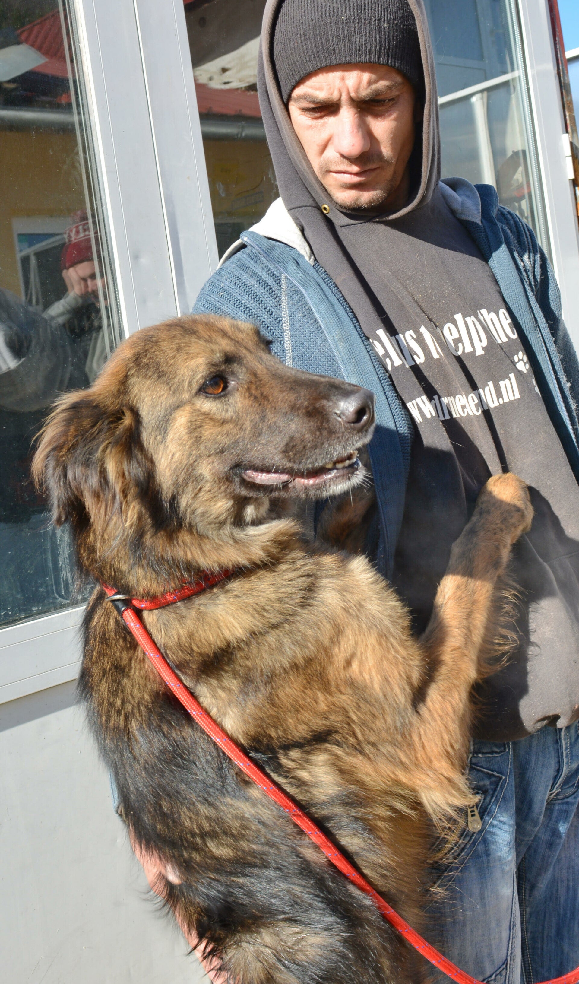 Op 19 oktober 2016 waren Rumen en Liam op de terugweg vanuit Plovdiv waar zij bij de dierenkliniek waren geweest. Zij zagen langs de drukke weg ineens pups lopen. Ze zijn gelijk gestopt om ze te helpen, terwijl ze de pups in de auto aan het doen waren verscheen plotseling de moeder. Zij is heel erg vriendelijk en was blij om ons te zien. Er was helemaal geen probleem ze konden haar optillen en hebben haar ook in de auto gezet. Na nog even gecheckt te hebben of er niet meer pups in de omgeving waren zijn ze op weg gegaan naar de RSDR shelter.