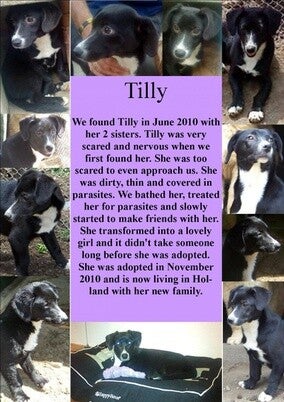 Gevonden op 9 juni 2010 3 kleine pups waarschijnlijk waren ze hun moeder gevolgd en haar kwijt geraakt. Ze zwierven over straat en waren zo bang dat ze niet gevangen wilden worden. Tony en de jongens waren in de buurt van het drukste cafe in Rudozem en er zaten 20 tot 30 mensen buiten hun koffie te drinken. Terwijl Tony en de jongens de pups probeerden te vangen, was uitlachen alles dat deze mensen deden. Dit is de mentaliteit hier in Rudozem,