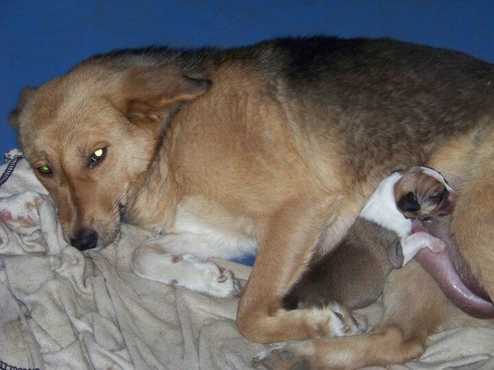 Met veel geduld wisten ze haar uiteindelijk binnen de poort van de opvang te lokken. Kort daarna beviel ze in de kelder van een gezonde, grote pup: Todd.