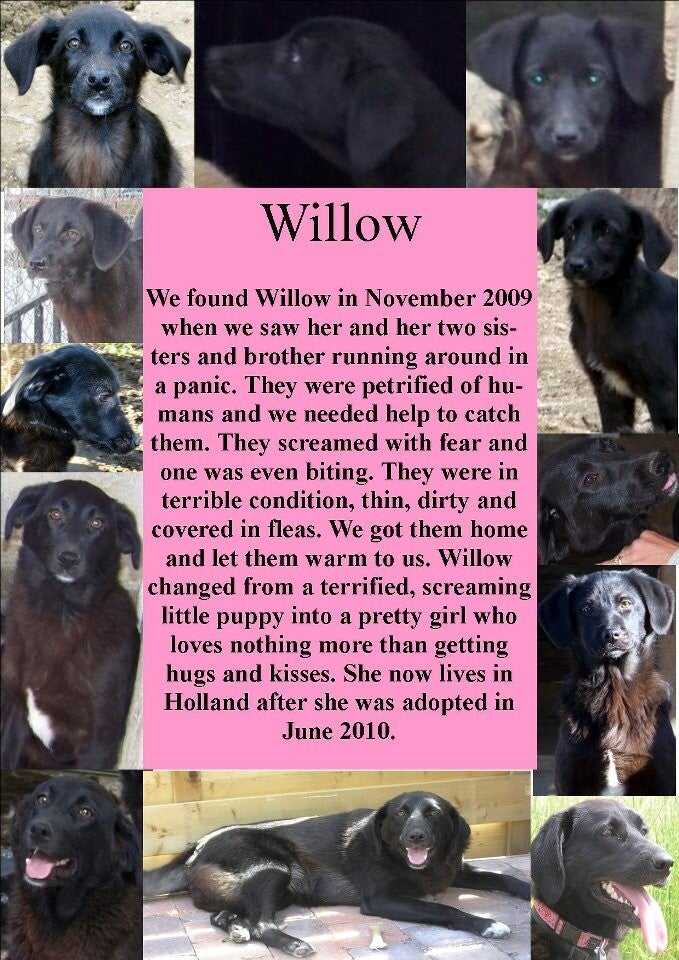 In november 2009 werden 4 pups gevonden op het midden van een weg, zij waren totaal in paniek en erg bang voor mensen. De pups waren er erg slecht aan toe zaten onder de parasieten. Een moeder was nergens in de omtrek te bekennen.