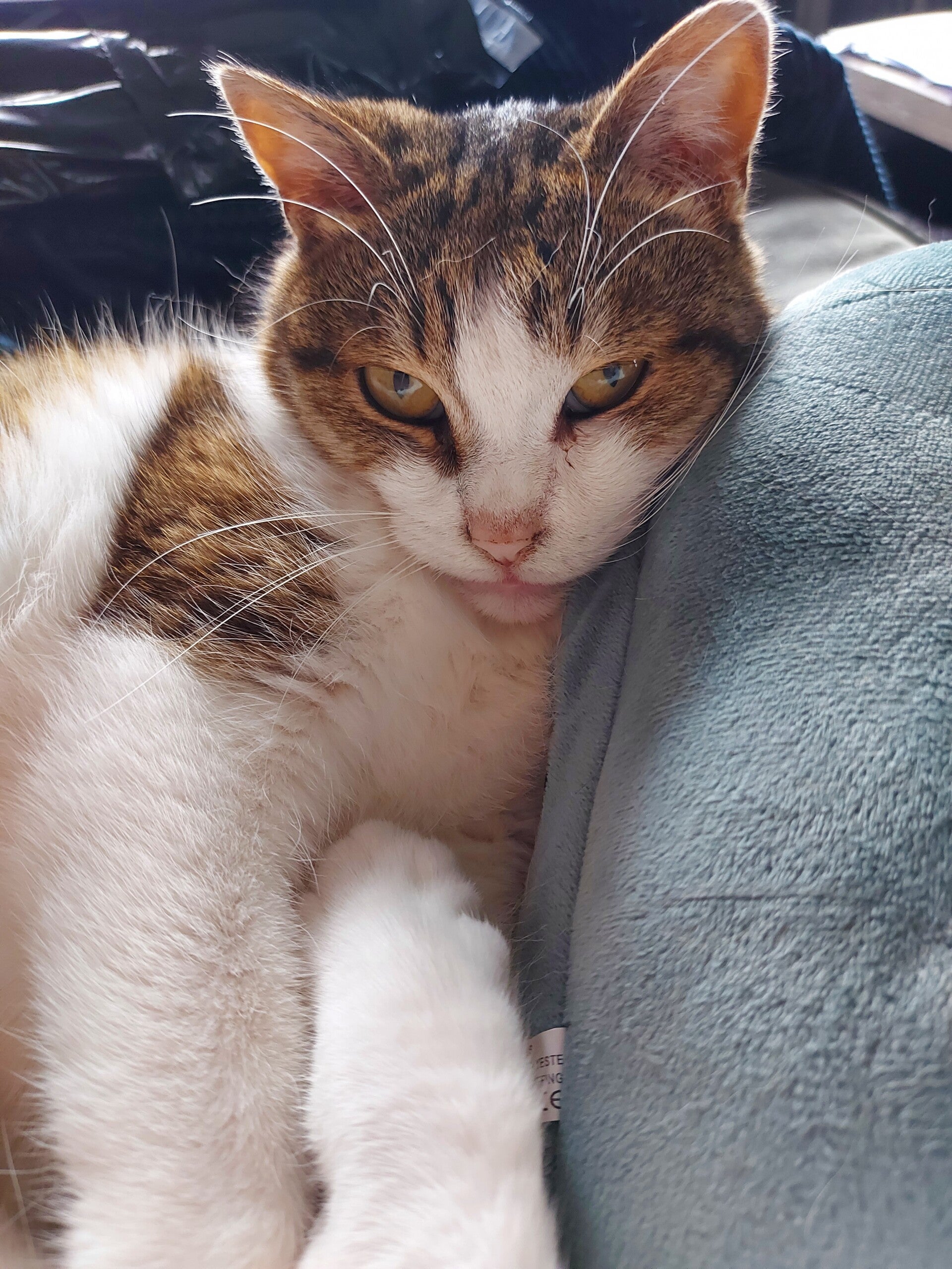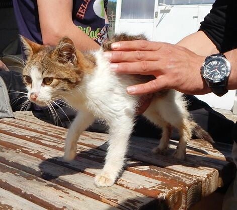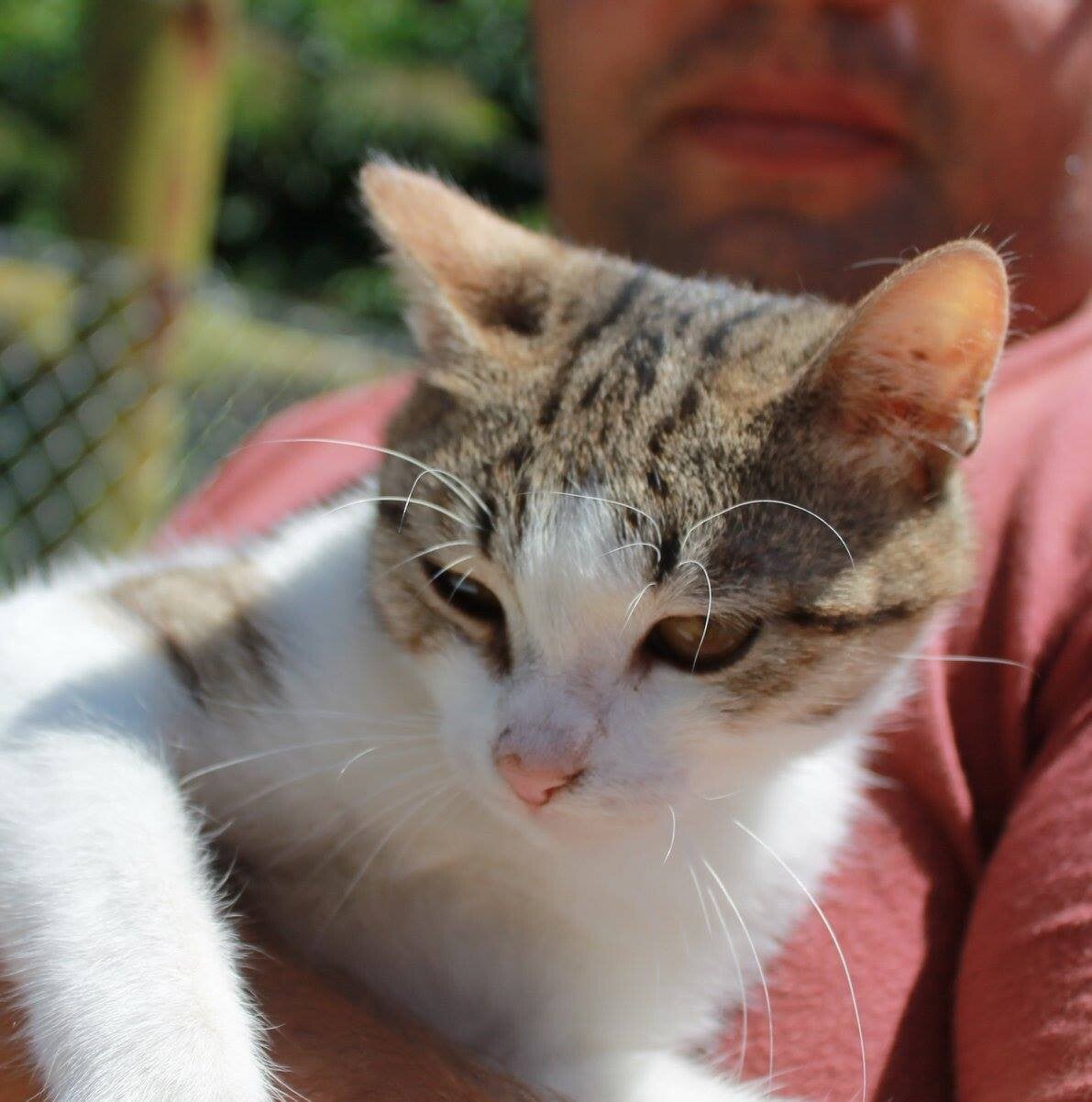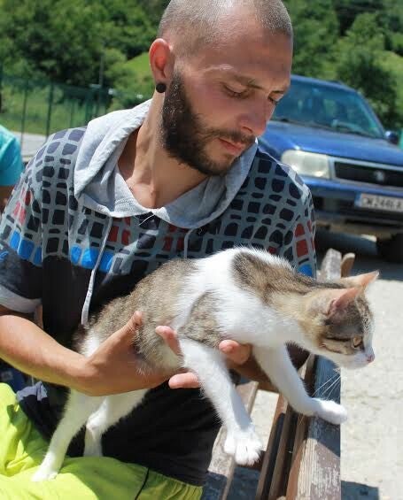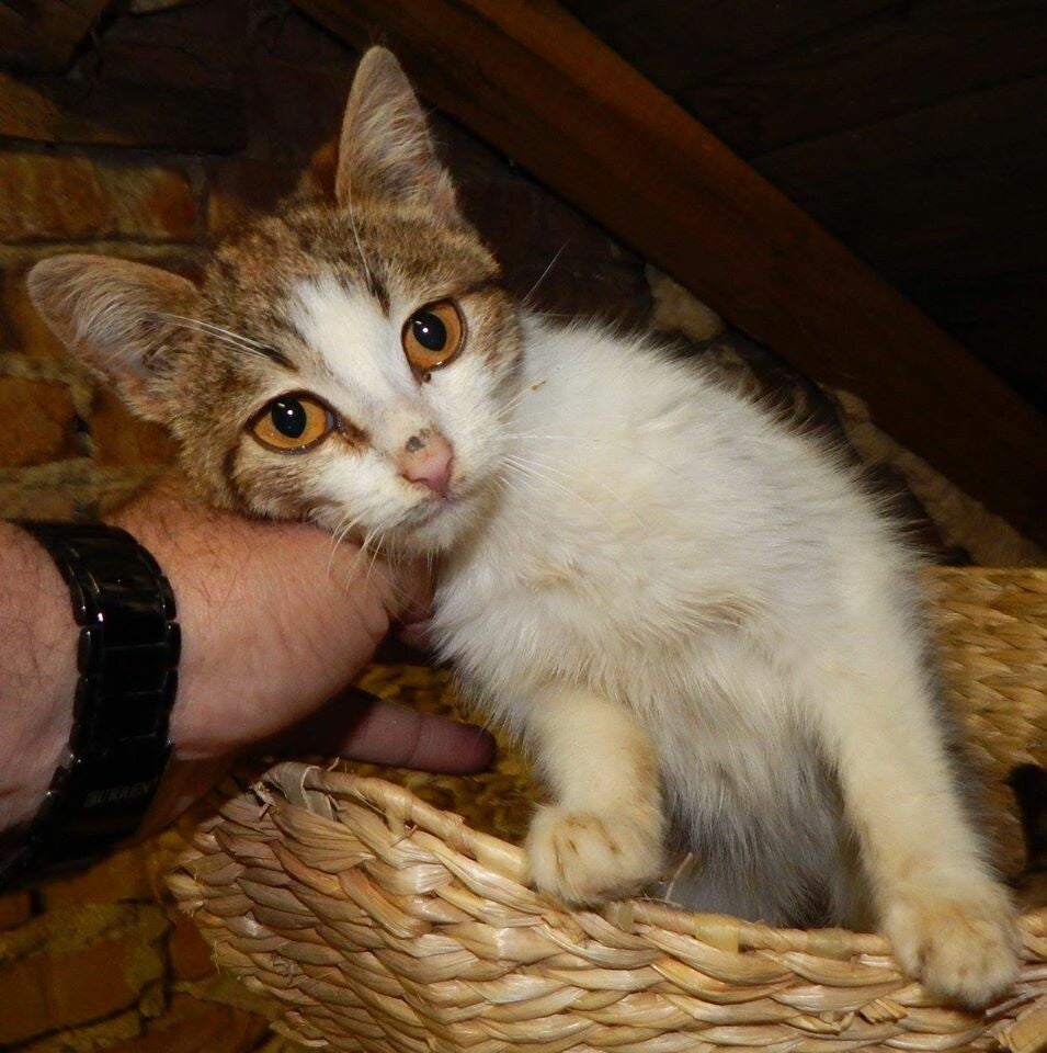 op 13 april 2016 gevonden bij de shelter, de jongens hoorde een kat miauwen het was heel mager en zat onder de uitwerpselen. hij zocht duidelijk hulp en was ziek.