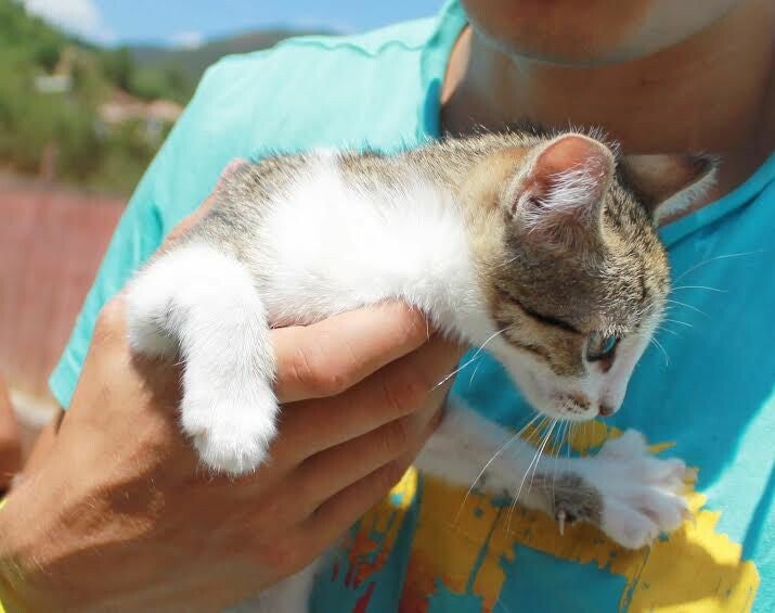 op 17 juni 2016 vroeg een oude man aan de poort of we hem konden helpen. Hij kon niet meer voor zijn poes en haar de baby's zorgen en vroeg of wij dat als je blieft wilden doen.