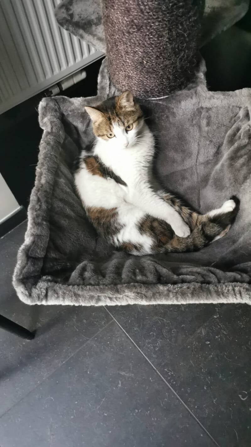Haar pootje moet al een tijd gebroken zijn geweest, hij zat tegen haar lijfje en was erg ontstoken. Er is geprobeerd met antibiotica en spalken haar pootje te redden maar moest later toch geamputeerd worden.