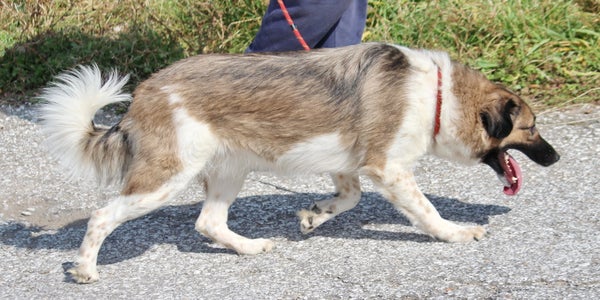 Nana heeft een heel rustig karakter en gaat graag mee wandelen. Het is fijn wandelen met haar, lekker relaxed en geen hyper gedrag. Ze laat alles gelaten over zich heen komen als je haar knuffelt. Ze heeft qua uiterlijk wat weg van een Karakachan maar zoals onze vrijwilligers haar hebben meegemaakt, verwachten ze het niet. Nana is een prachtige, gezonde teef die ongetwijfeld na adoptie nog het een en ander moet leren maar dat moet voor iemand die hier wat tijd en geduld in wil steken, geen probleem zijn.