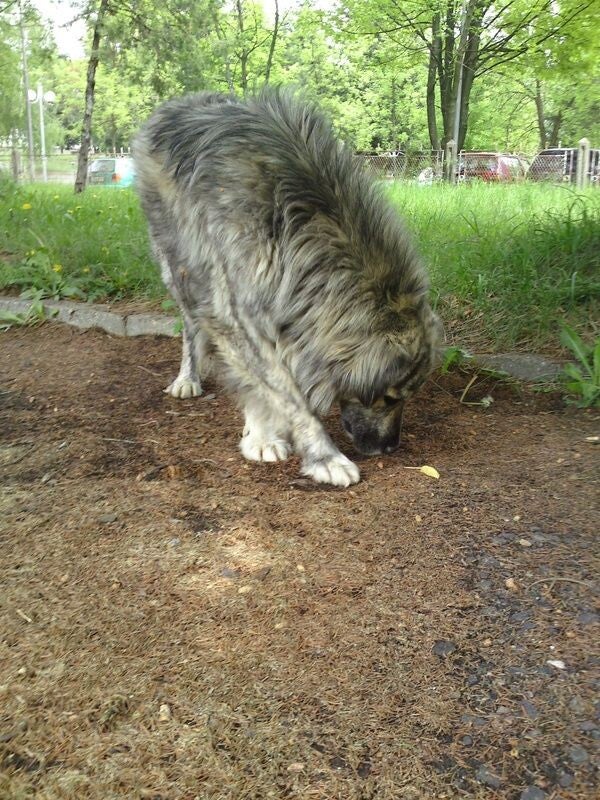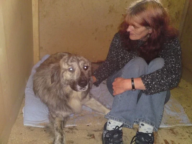 Hij was een straathond en leefde samen met een roedel andere honden. Elke dag gaven we hen te eten, maar alle honden waren erg schuw en niet benaderbaar.