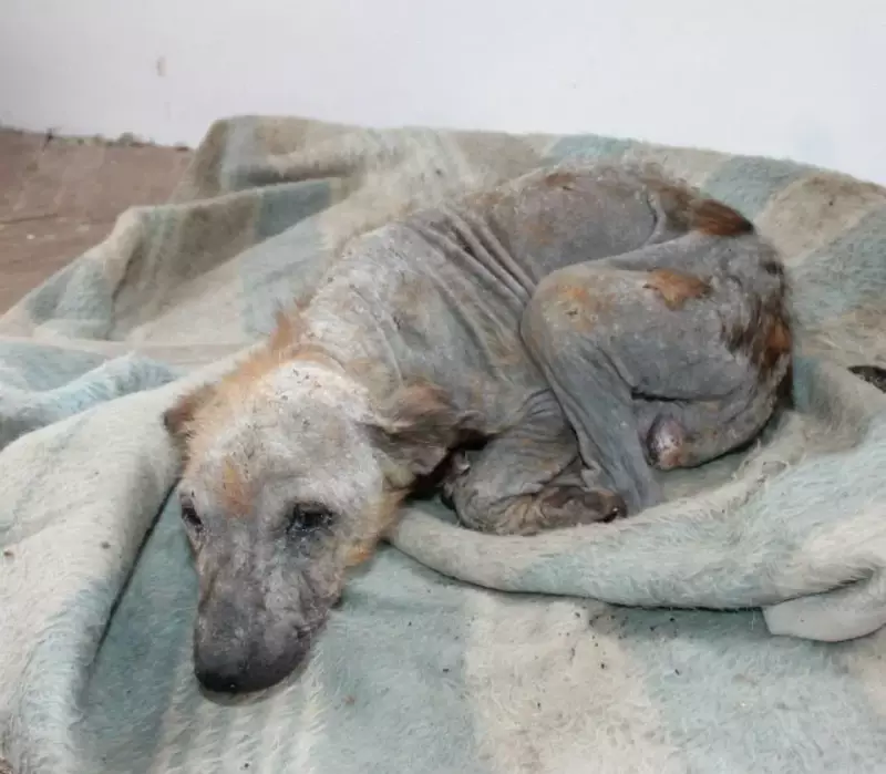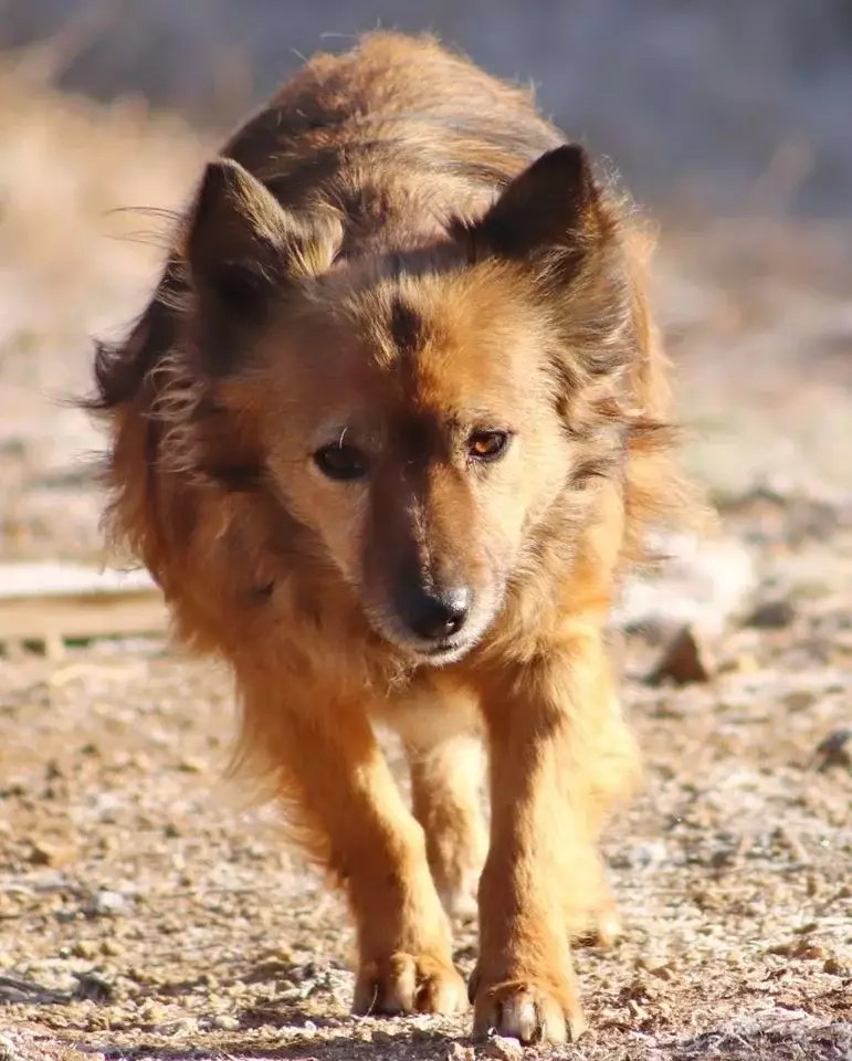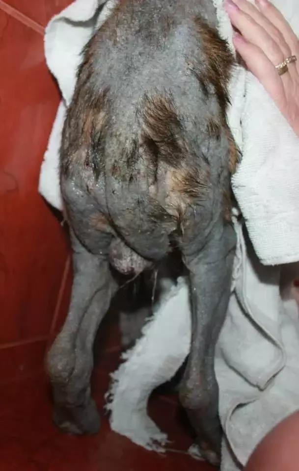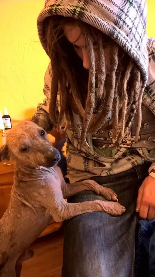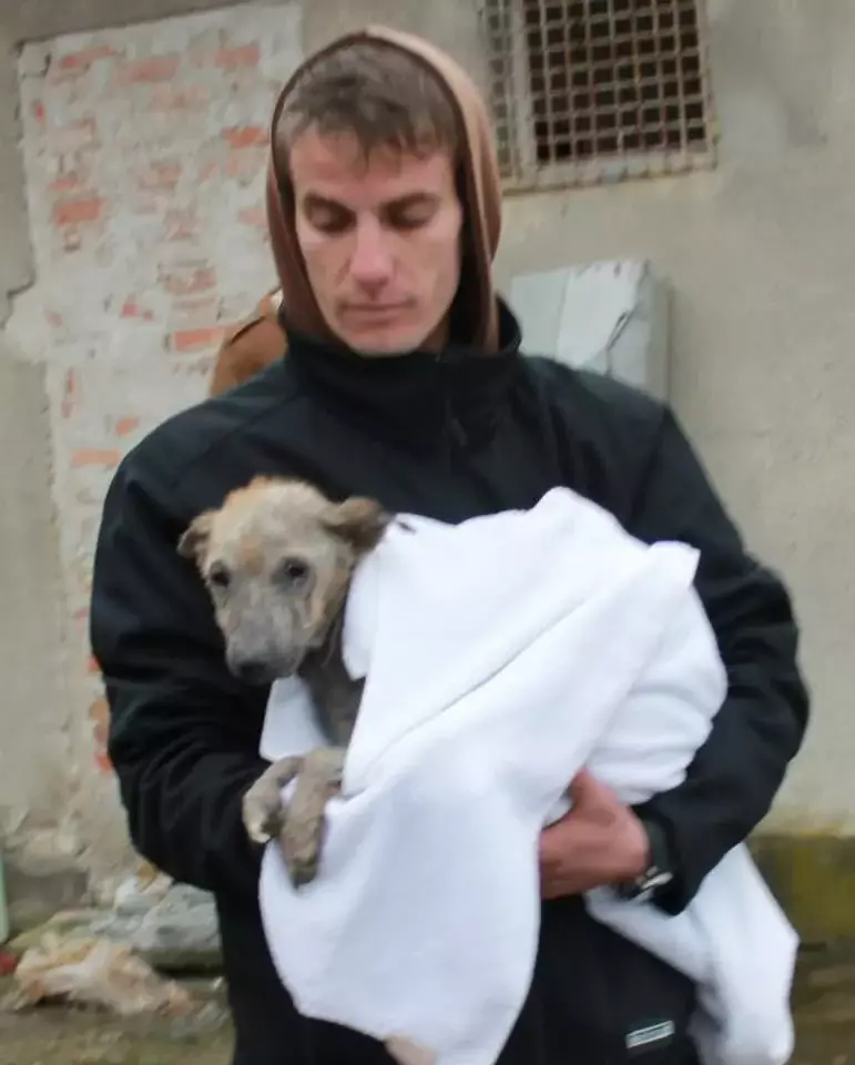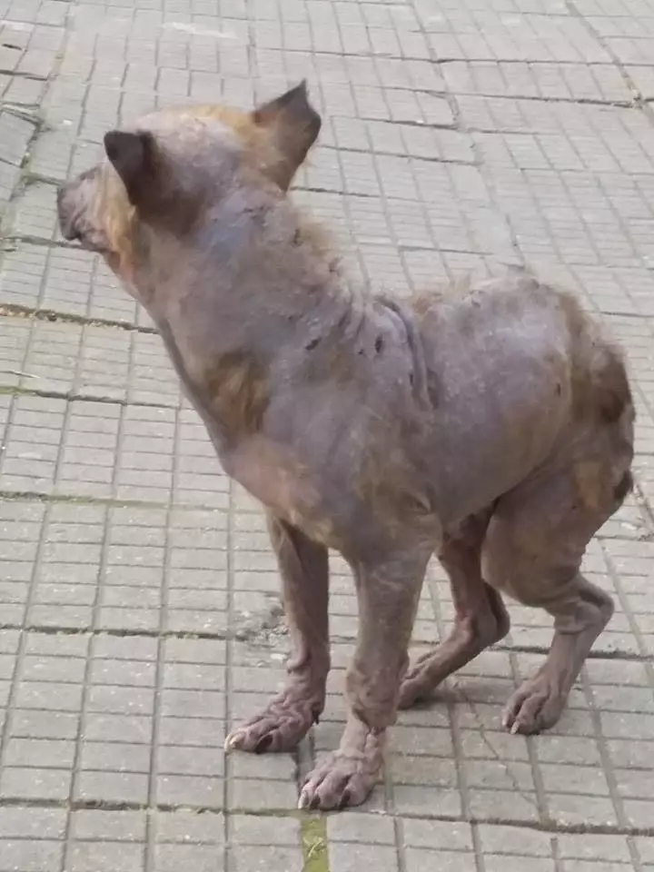 Hij was heel erg mager en had al zijn haar verloren, hij had een hele erge vorm van Demodex. Annie in Kurdshali slaagde erin hem te vangen ondanks dat hij heel erg bang was en heeft hem toen naar een veilig plekje gebracht voor de nacht, totdat wij hem op konden halen.