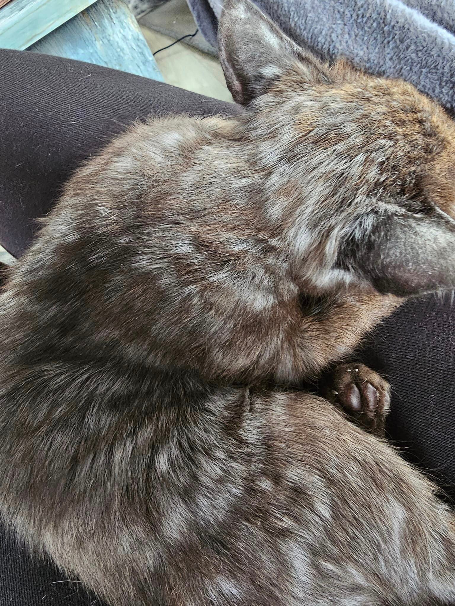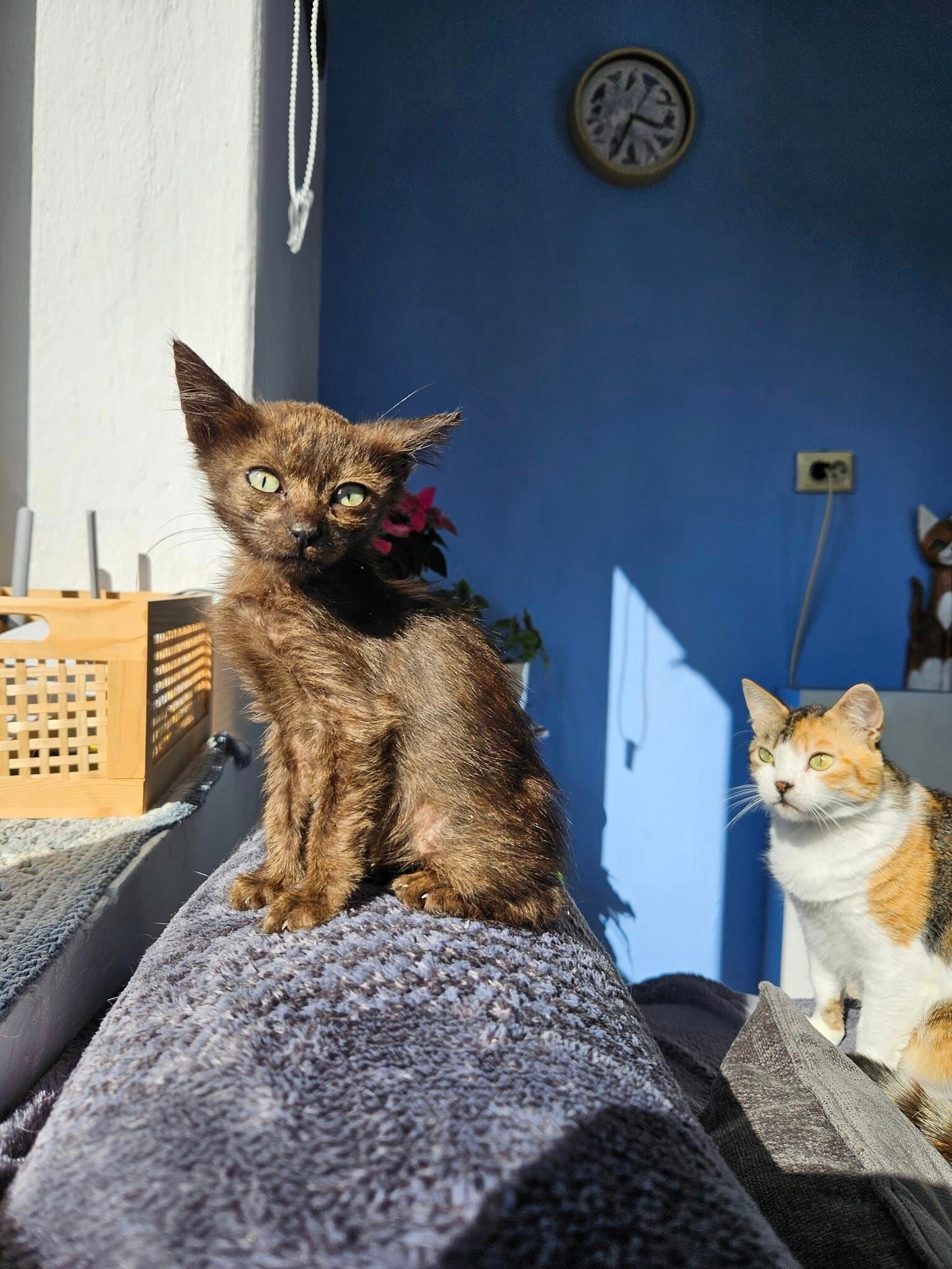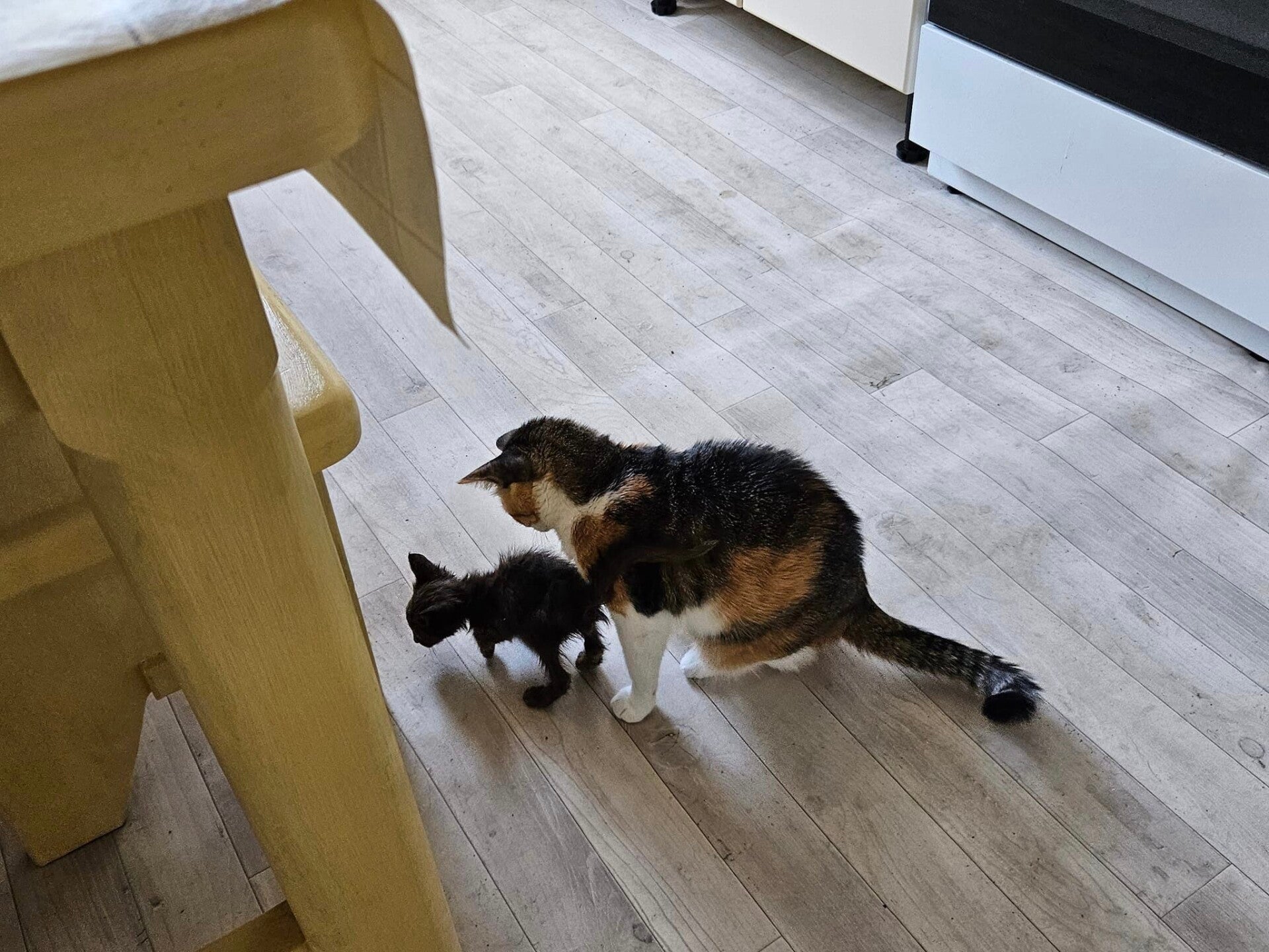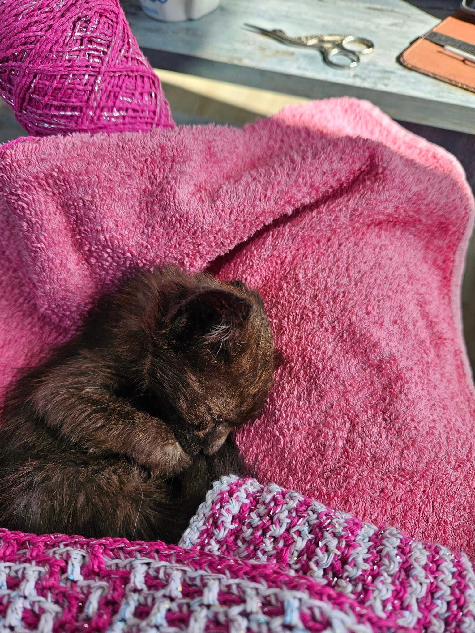 Tony vond Nugget terwijl hij naar eten zocht bij vuilnisbakken langs een drukke weg. Er was daar een nestje kittens geboren, toen Tony stopte om Nugget te voeren, hoorde hij dat Nugget’s nestgenootjes waren omgekomen in het verkeer. Dit raakte hem zo diep dat hij besloot Nugget mee naar huis te nemen. Het kleine katertje was mager en zat onder de vlooien, maar na wat rust, goede verzorging en genoeg eten bloeide hij helemaal op. Met zijn ondeugende karakter wist hij al snel ieders hart te veroveren. Nu verblijft Nugget in het asiel samen met de andere katten,