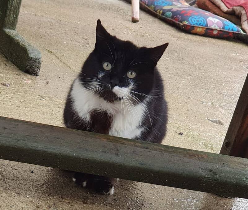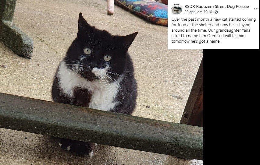 Afgelopen maand kwam er een nieuwe kat eten halen in het asiel en nu blijft hij de hele tijd in de buurt. Onze kleindochter Yana vroeg hem Oreo te noemen dus ik zal hem morgen vertellen dat hij een naam heeft.