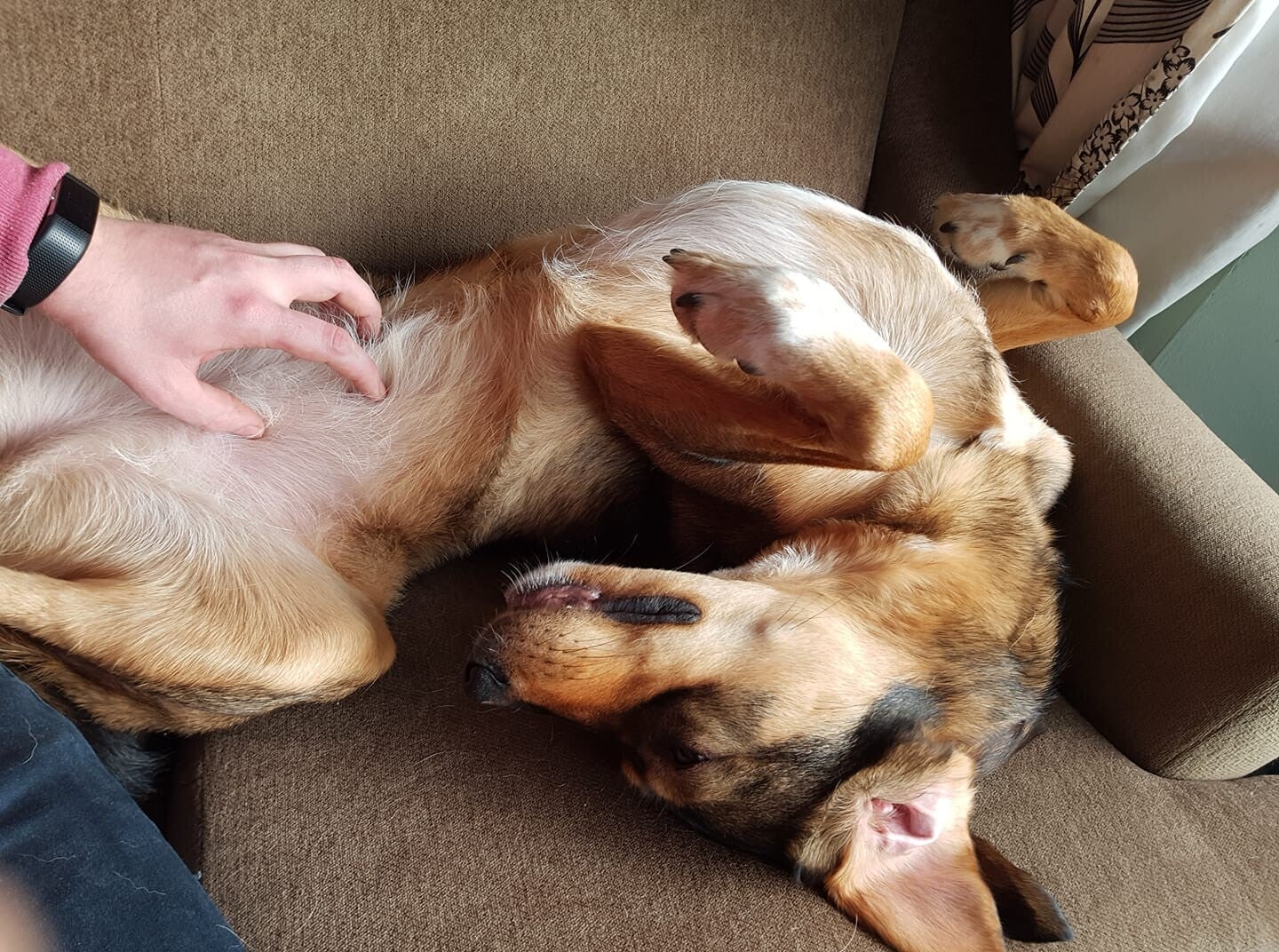 Op 1 februari 2018 trof het team van RSDR Cinder met haar pasgeboren pups aan in een doos op de vuilnisbelt. Ze was duidelijk gewend aan mensen en dus daar achter gelaten. Cinder was direct een hele trouwe moeder en liet haar pups geen seconde alleen, ze kwam zelfs niet uit de doos toen er voer voor haar werd neergelegd. Ava is een van deze pups.