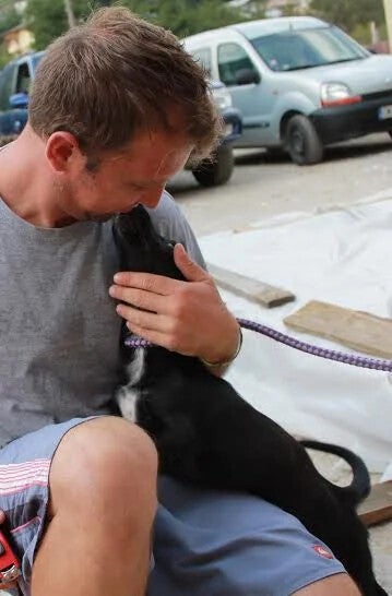 Baxter is geboren in de opvang, zijn moeder is Rosie een klein teefje dat gevonden werd op straat en bleek hoogzwanger te zijn.