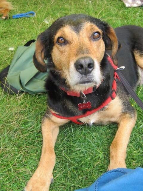 Benji zagen wij voor het eerst op 29 september 2013 een super lief reutje heel aanhankelijk, wij konden hem niet opnemen in de shelter er was gewoon geen ruimte en lieten voer voor hem achter. Echter op 3 oktober zagen wij hem weer en konden het niet over ons hart verkrijgen om hem nog een keer achter te laten, Diane opende de auto en de bench en Benji sprong erin draaide een rondje en ging liggen alsof hij wilde zeggen eindelijk veilig.