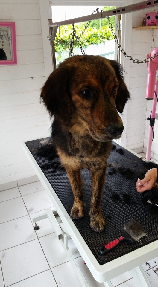gevonden op 22 oktober 2015 gedumpt in de stromende regen naast een drukke weg, samen met broertjes en zusjes.