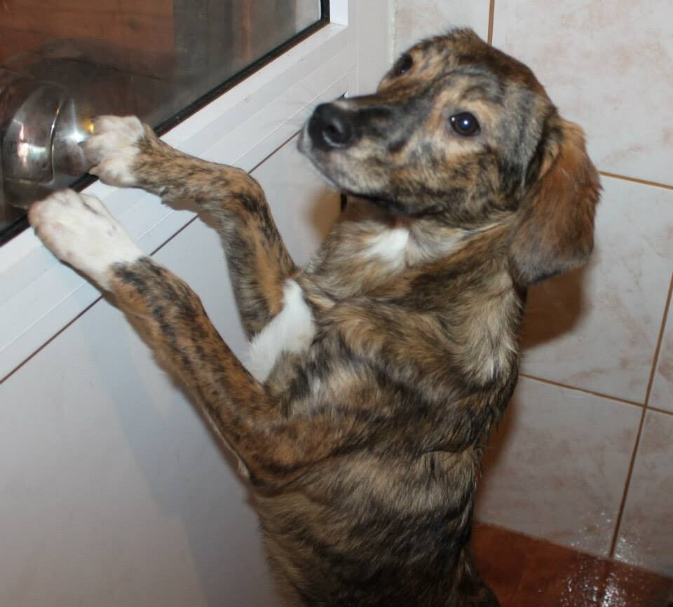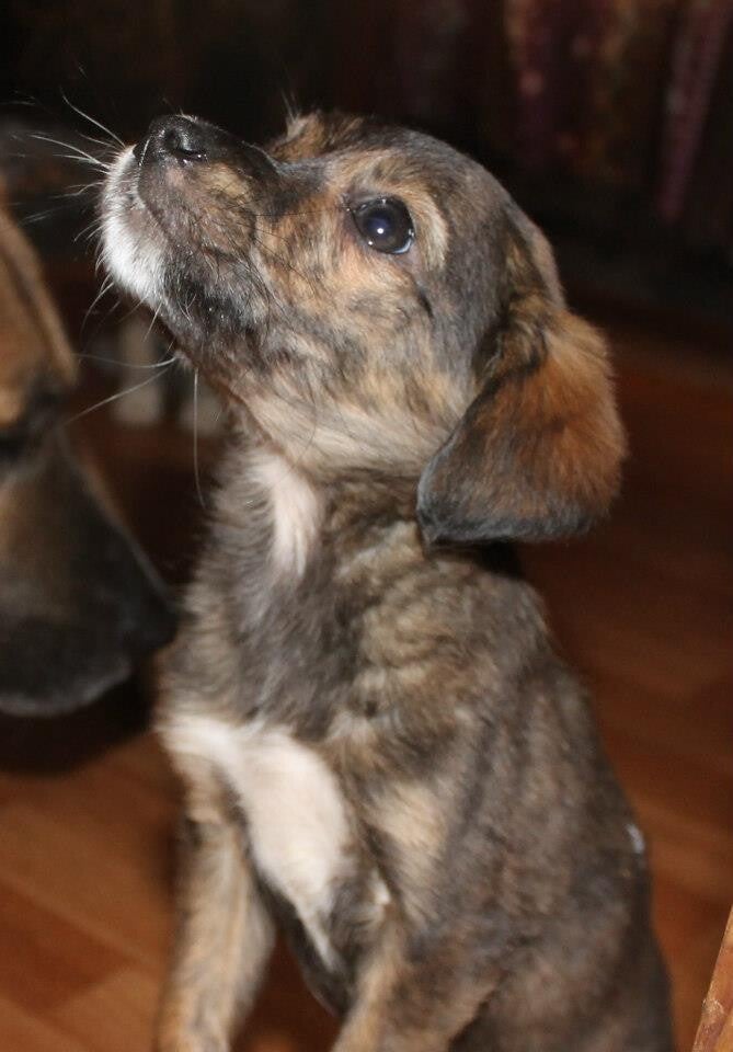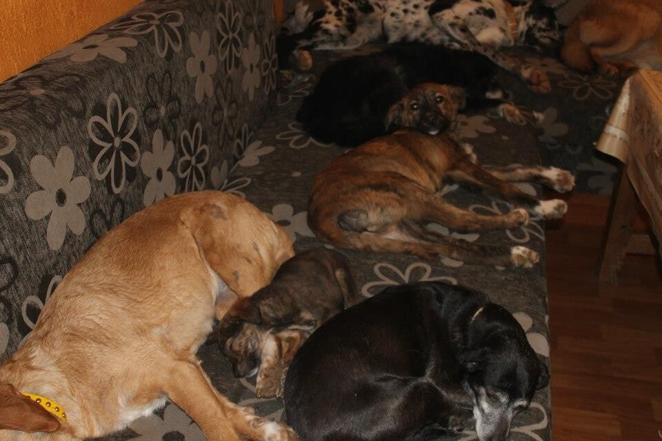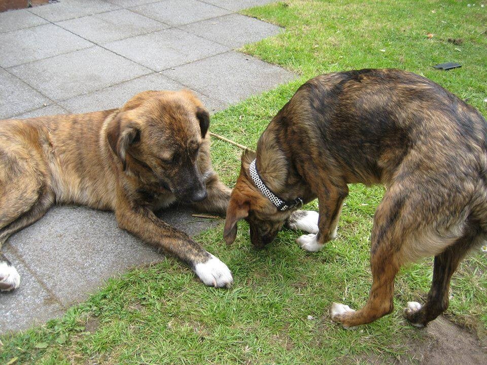 Toen wij daar aankwamen bleken er 10 pups rond te huppelen. Wij constateerden dat er niet 1 maar 2 nestjes gedumpt waren want de grootte van de pups was heel verschillend. De moeder van Baldwin is waarschijnlijk een 2e/3e generatie kruising Karakachan. Twee pups hebben het helaas niet gehaald en zijn overleden.