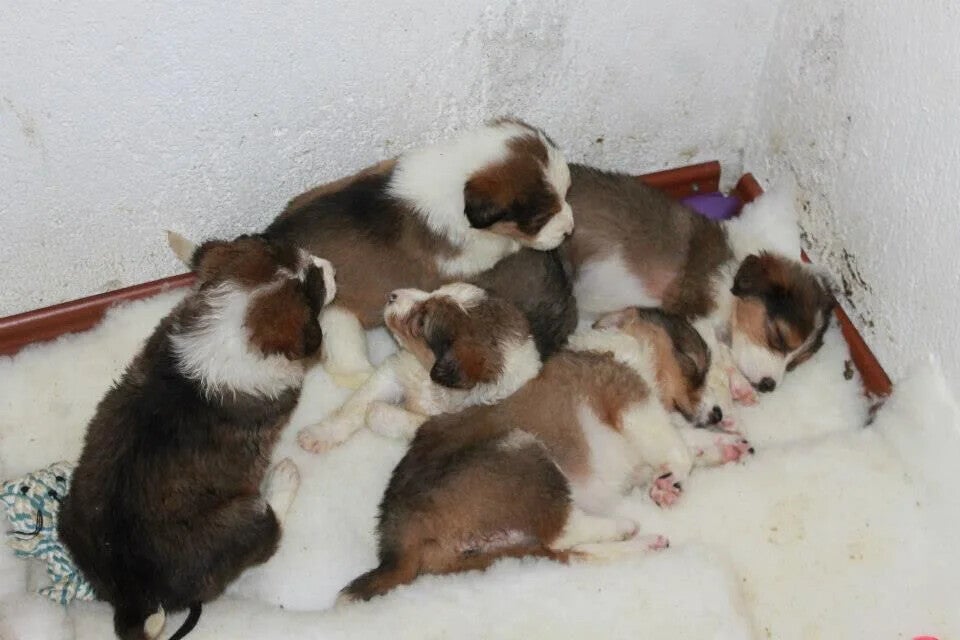In de loop van een paar dagen werden 5 pups gevonden in het centrum de moeder keek niet meer naar ze om en