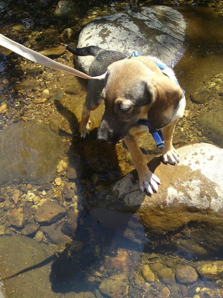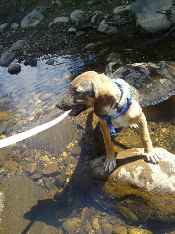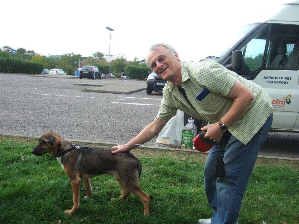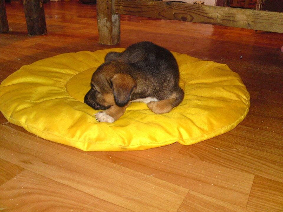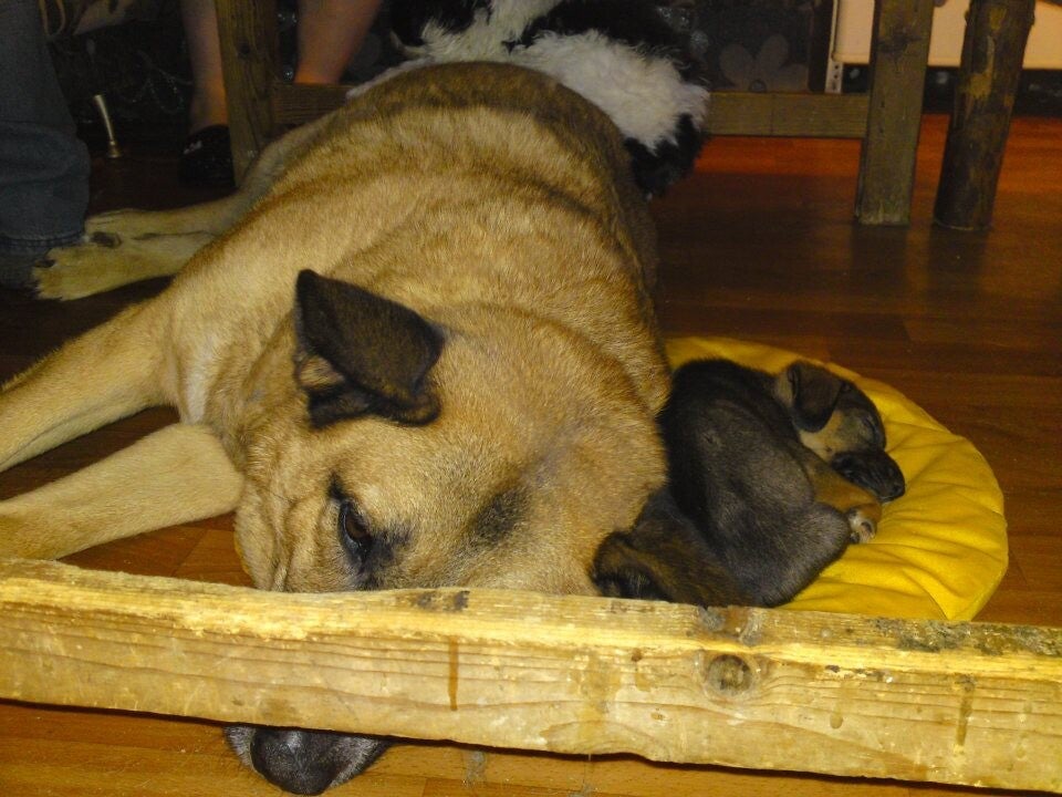 Hij werd achtergelaten in een doos in het bos, met zijn broers en zussen, ze hadden er al dagen gelegen voor iemand ons vertelde over hen op 26 april 2012. Het was heel koud s'nachts en gedurende de dag lagen ze in de brandende zon, zonder dat er iets te eten of te drinken. Twee van de pups waren al dood toen we ze vonden en 2 leefde nog, helaas hebben de anderen het niet overleefd Flanagan is de enige die het gered heeft. Flanagan was ingestort en uitgedroogd toen we hem vonden, had last van een zeer vervelende infectie die hem ook bijna doodde.