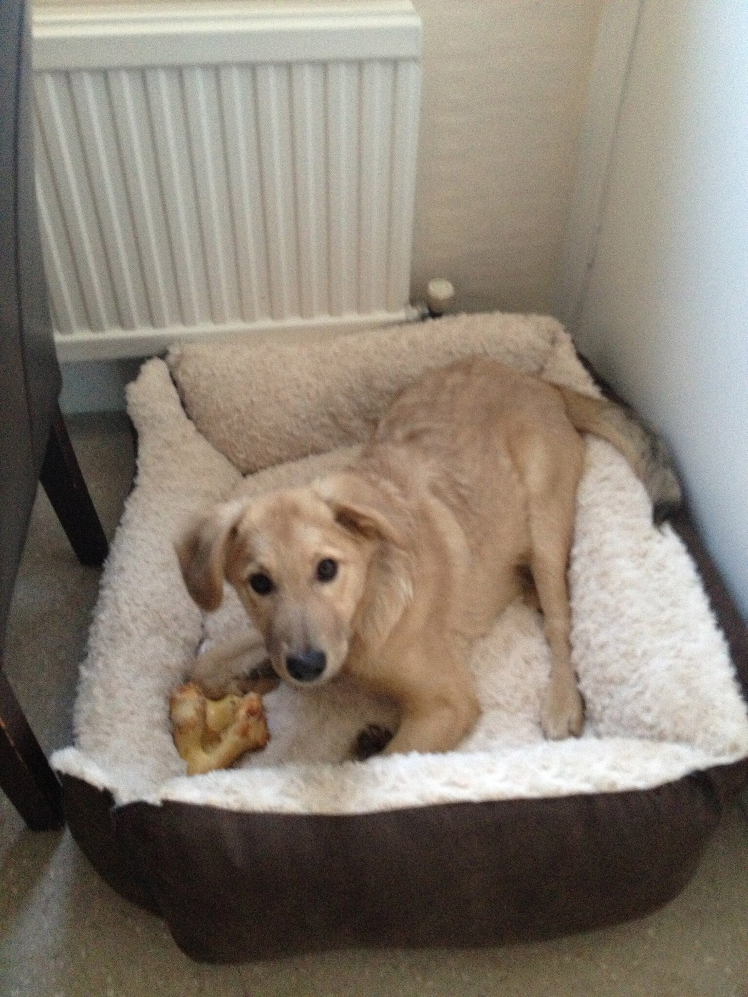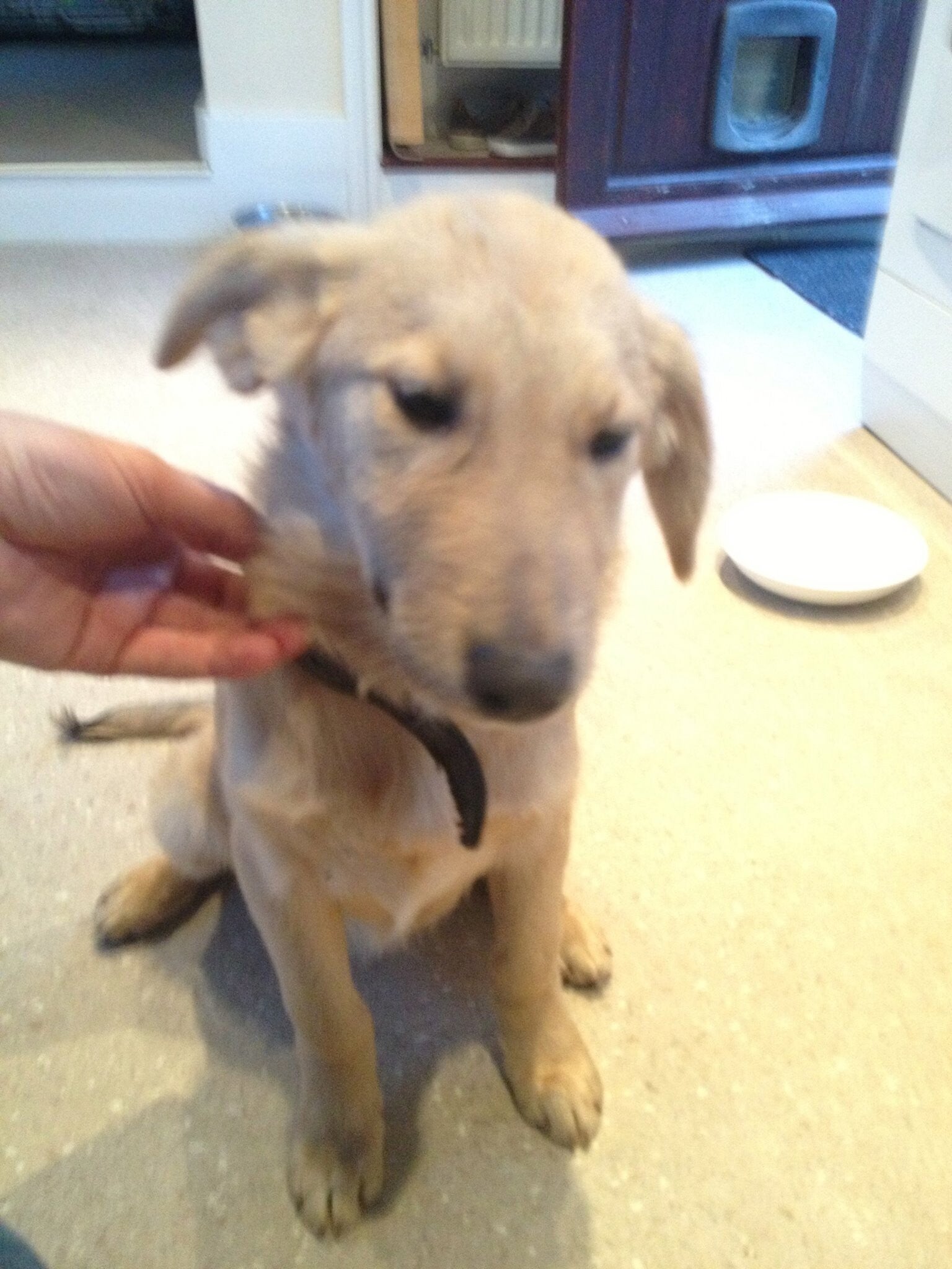 Een dame hield Luke en Diane aan in het ziekenhuis op 21 oktober 2014, zij vroeg of we een pup konden helpen die alleen op straat was.