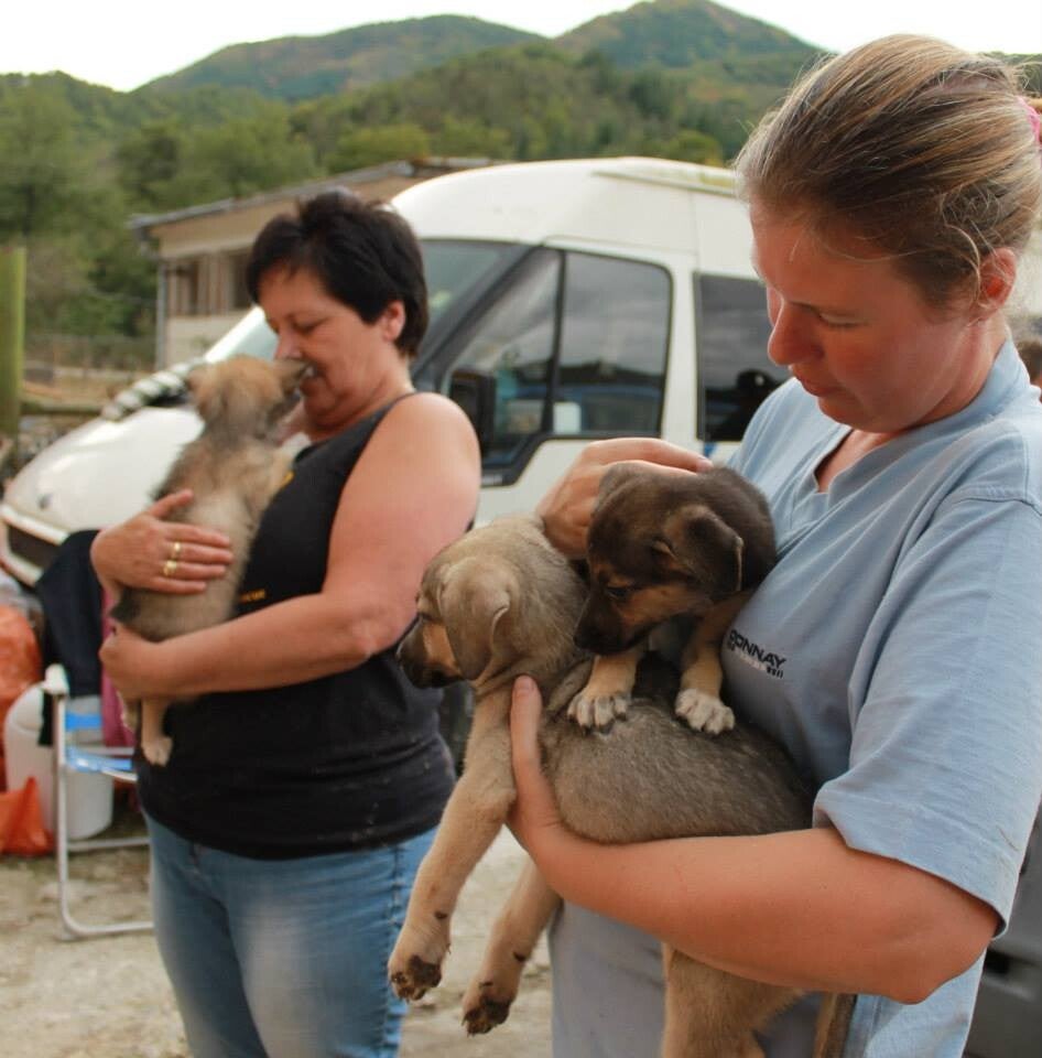 De pups zaten in een doos en waren heel erg klein, uitgehongerd en uitgedroogd, hoorde duidelijk nog bij hun moeder te zijn.