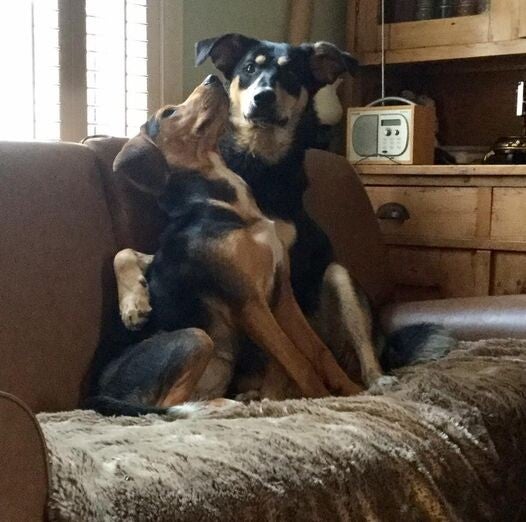 De pups zijn samen gevonden, maar door verschillende mensen gedumpt op dezelfde plaats na elkaar, duidelijk 2 nestjes Tim en Megan zijn jonger.