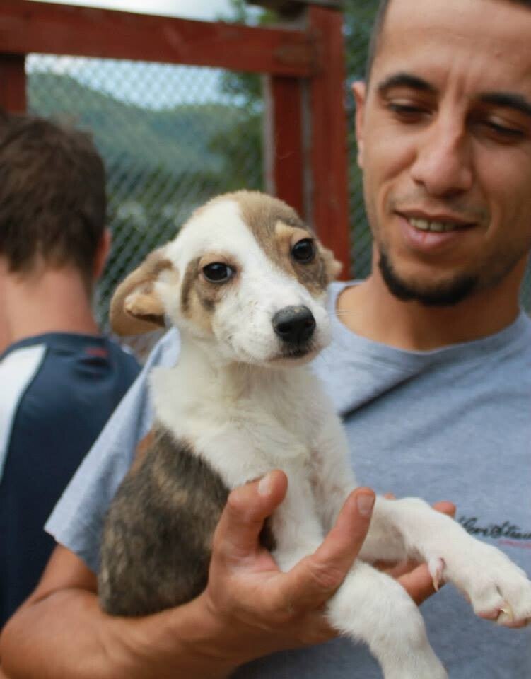 Op 15 juli 2014 zagen wij een kleine pup langs een drukke weg bij een benzinestation, we stopten en toen kwamen er nog twee pups aan lopen. Ze waren duidelijk aan mensen gewend en wilden vrienden worden, waren een beetje verlegen. Al de pups waren ziek en hadden infecties, na aankomst zijn ze gelijk behandeld en hebben antibiotica gekregen.