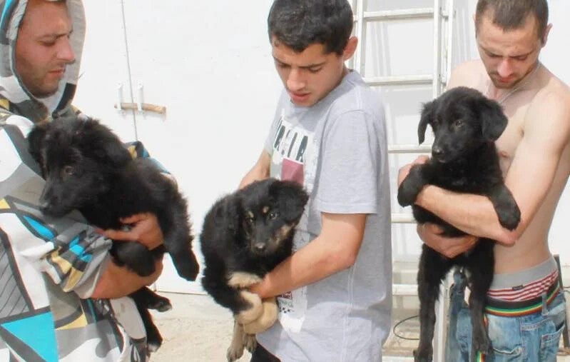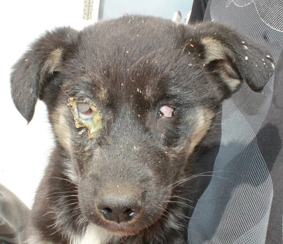 Op 6 april 2016 werden deze pups bij de shelter gebracht, ze werden gewoon in de armen van de jongens gedrukt. Ze waren er slecht aan toe de jongens waren er van overstuur. 1 van de pups is waarschijnlijk helemaal blind(Morris), wat er met zijn ogen is gebeurd wij weten het niet.