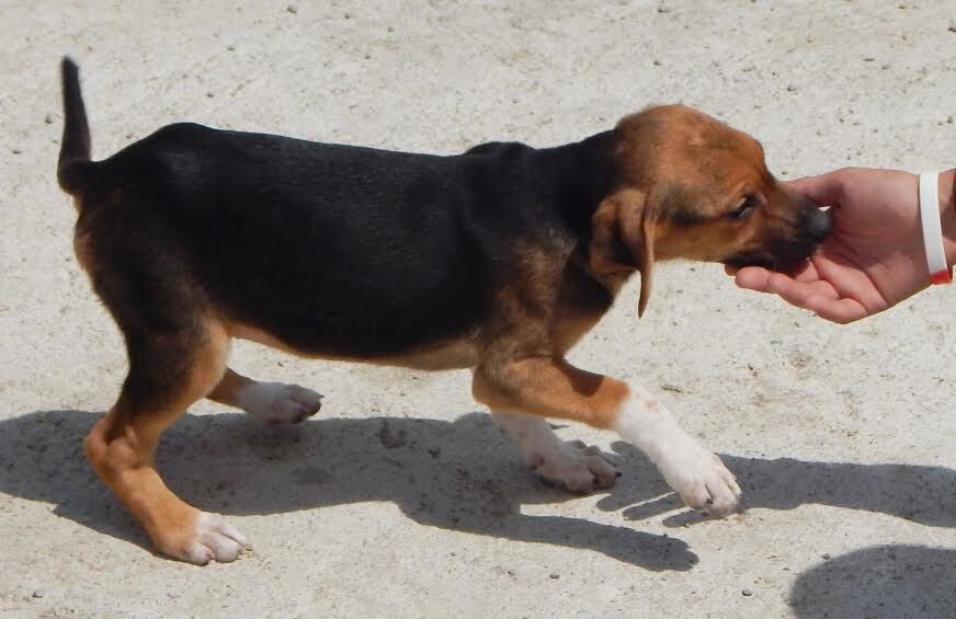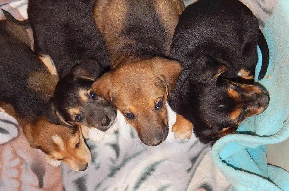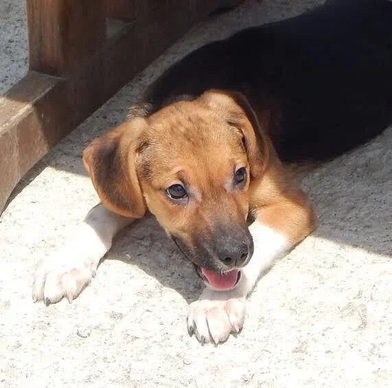 Op 8 april 2016 werd er een doos gebracht bij de shelter met 8 kleine pups, samen met de pups kwam er ook een volwassen reu die werd ook achtergelaten.