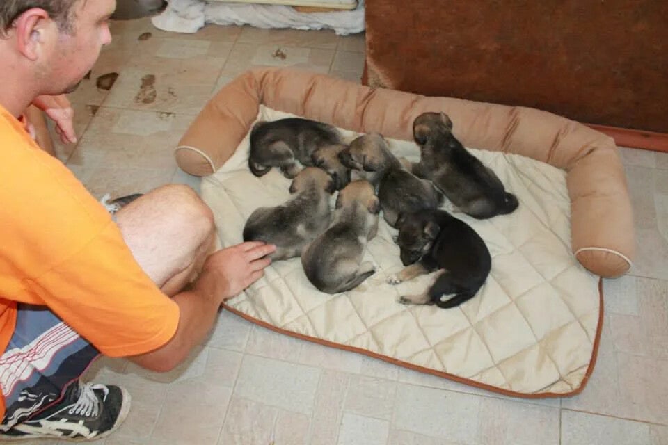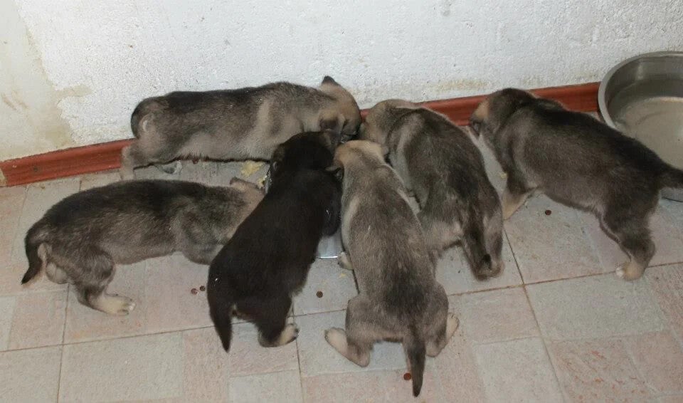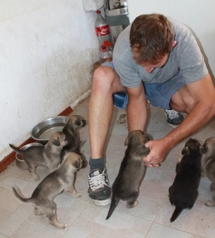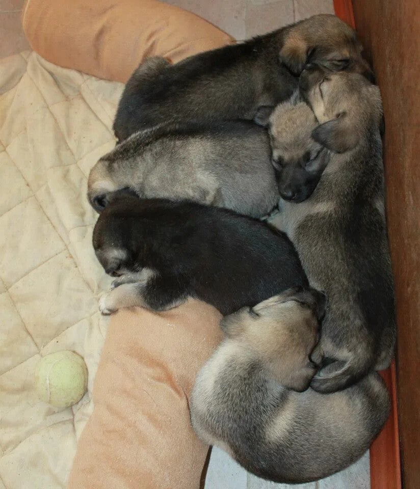 De pups zaten in een doos en waren heel erg klein, uitgehongerd en uitgedroogd, hoorde duidelijk nog bij hun moeder te zijn.