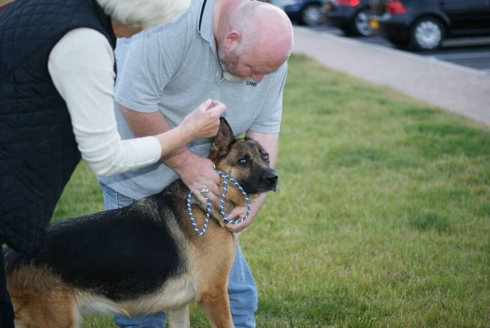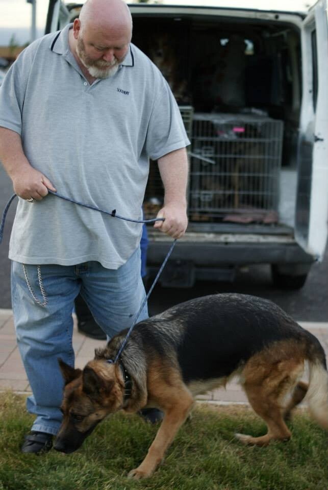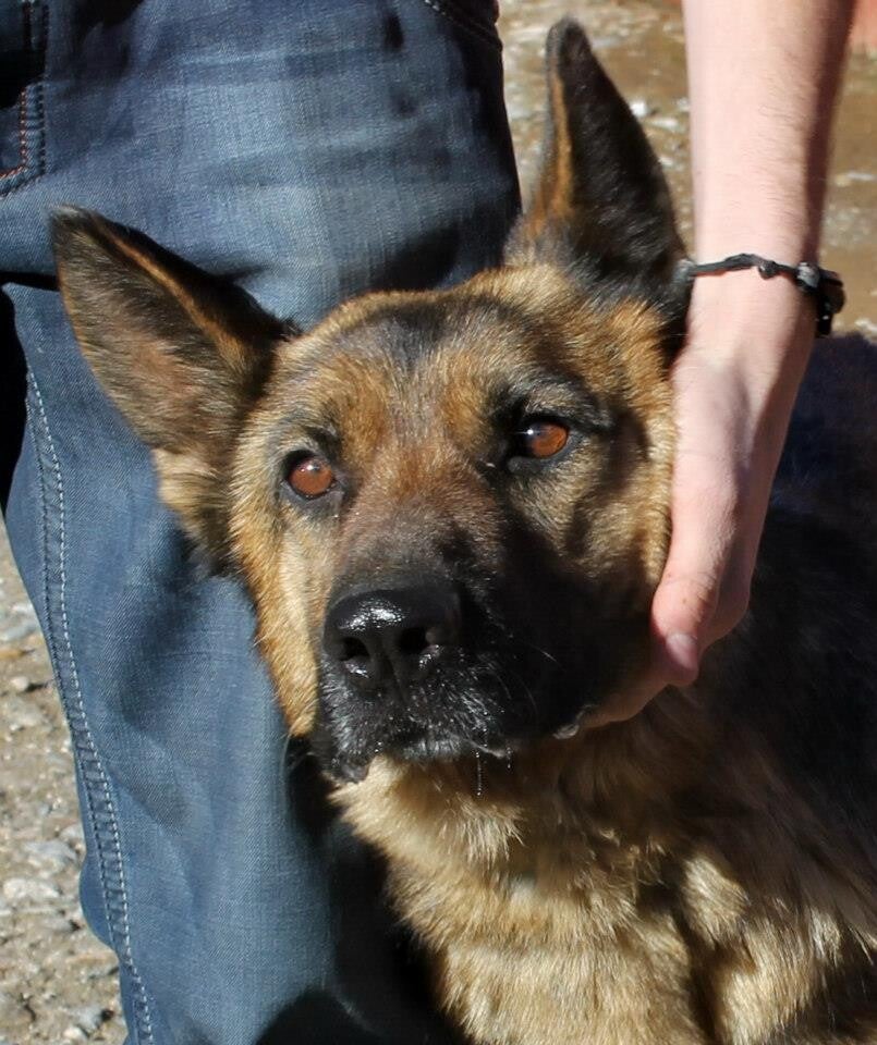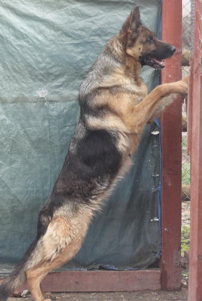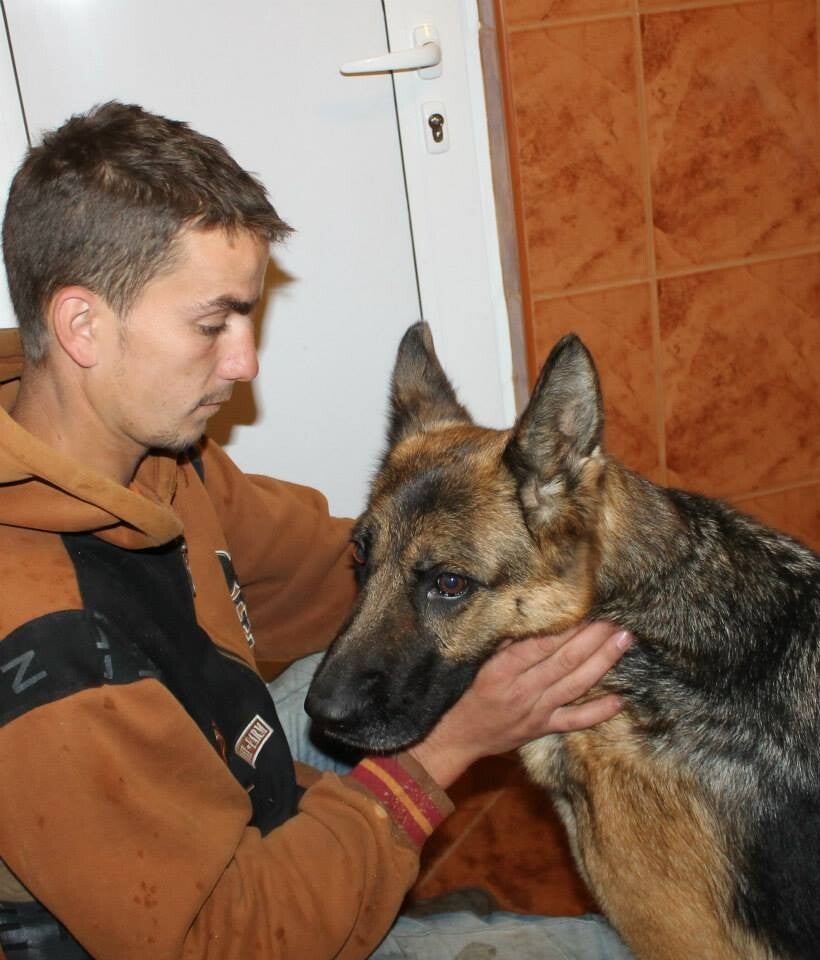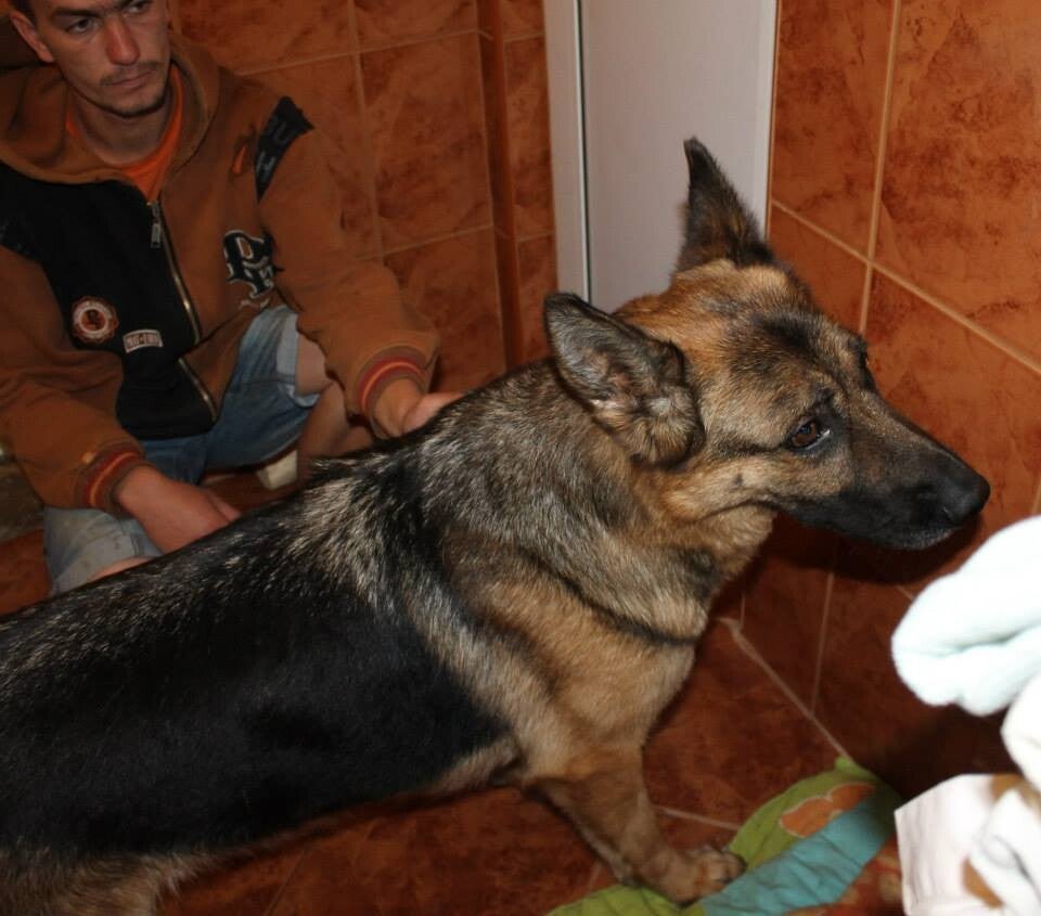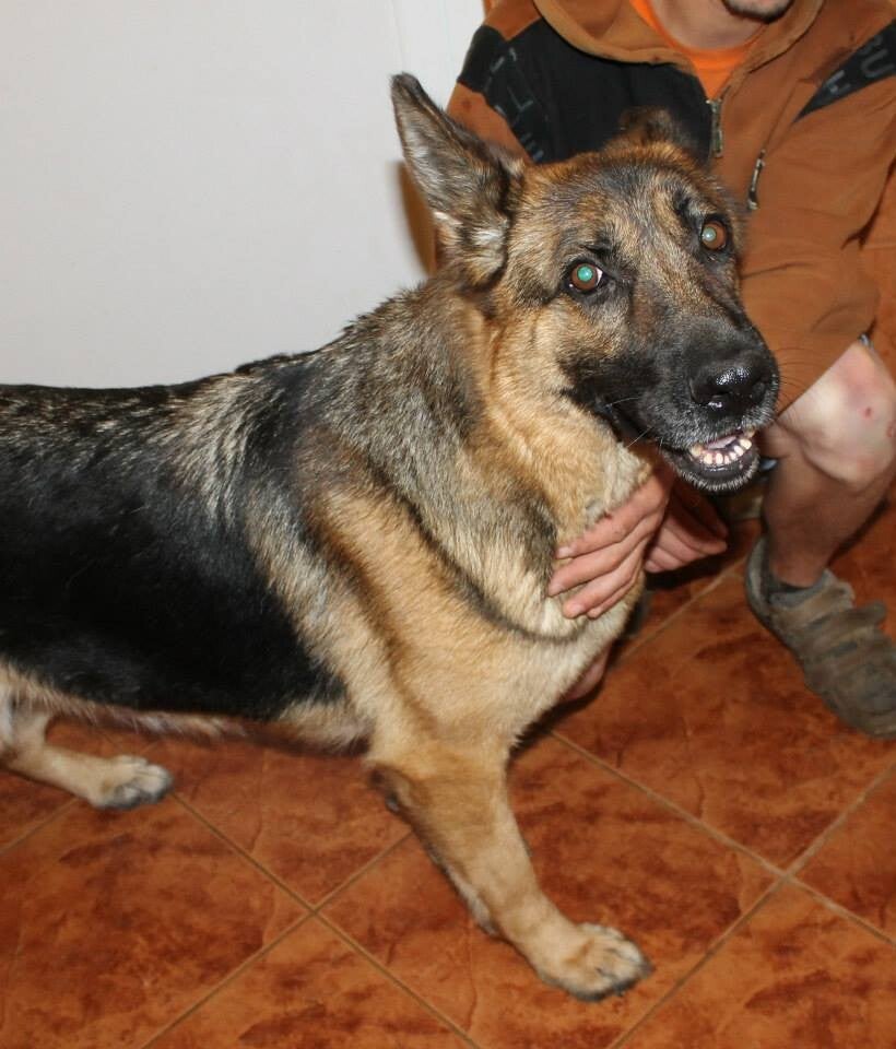 Iemand had een Duitse herder moeder met haar pups gedumpt in het bos. Een oude man vond haar en begon haar eten te geven. Uiteindelijk volgde ze hem naar zijn huis, maar hij was niet in staat om haar in zijn tuin te laten, omdat hij al een hond had.