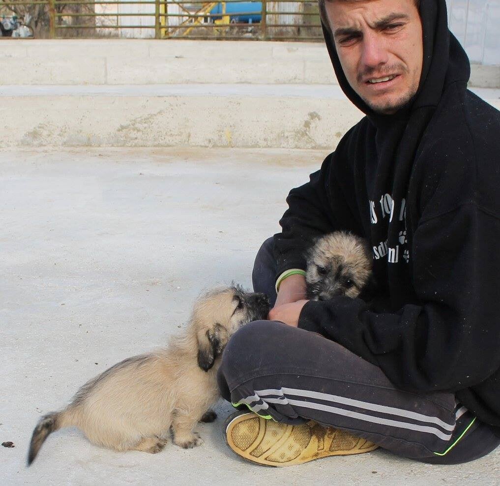 op 8 oktober 2016 het begon al donker te worden toen medewerker Kristofar een doos met pups vond bij een vuilcontainer. De pups hadden zeker de ochtend niet gehaald. De kans dat vossen ze te pakken zouden krijgen of doodgereden zouden worden op de drukke weg was groot. De pups werden heel ziek zij bleken besmet met het Parvo virus en moesten een tijd in de kliniek blijven. Nu ze Parvo overwonnen hebben zijn ze heel hun leven immuun.
