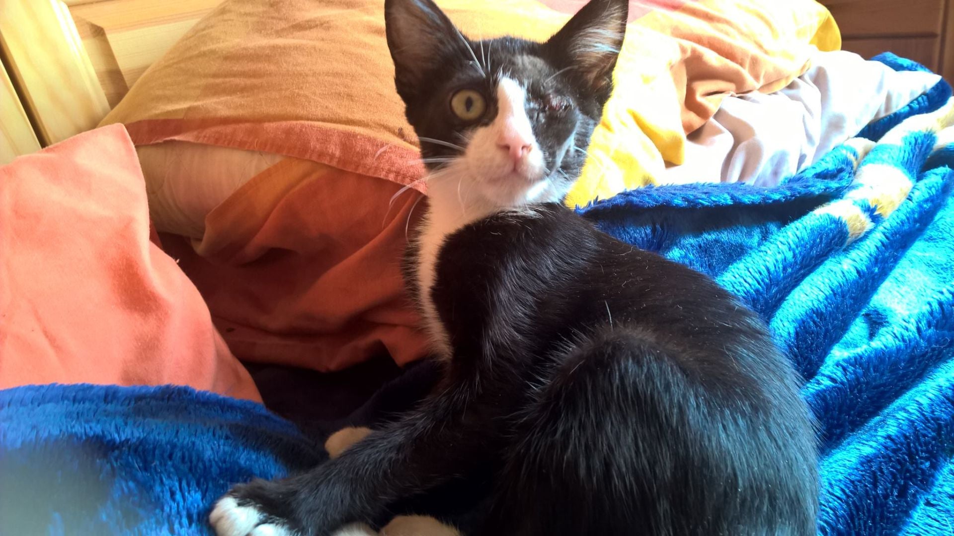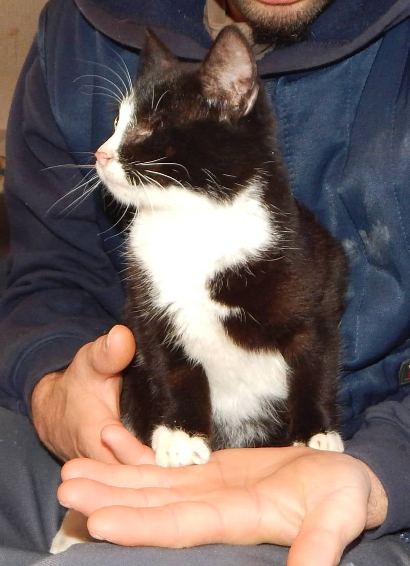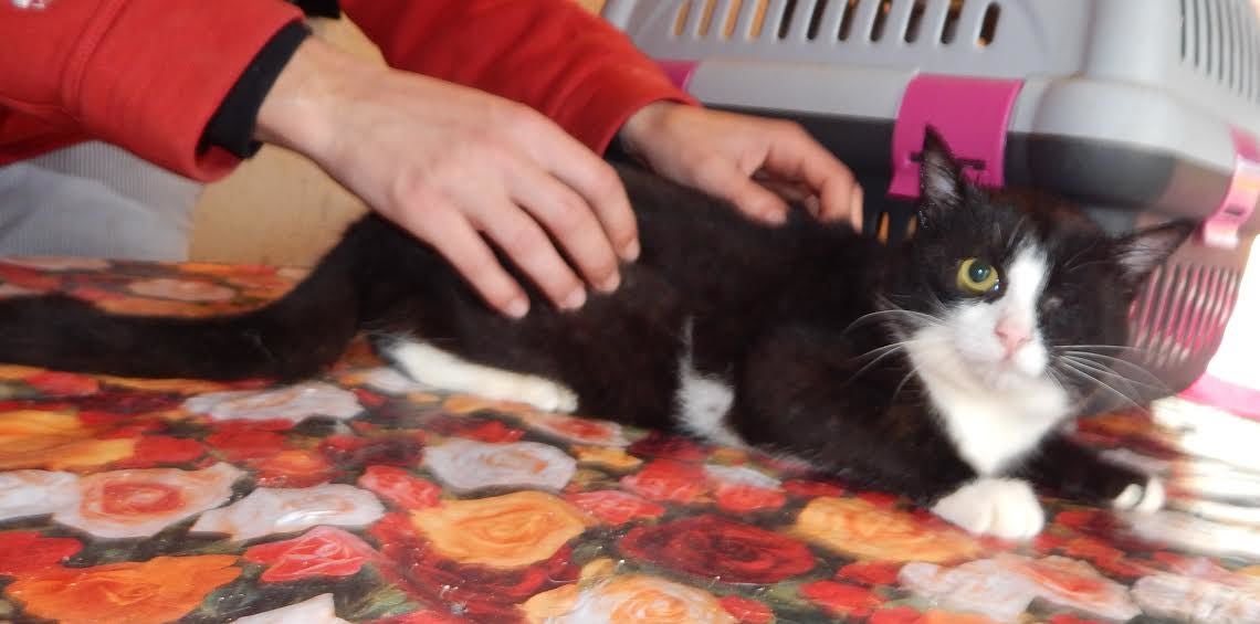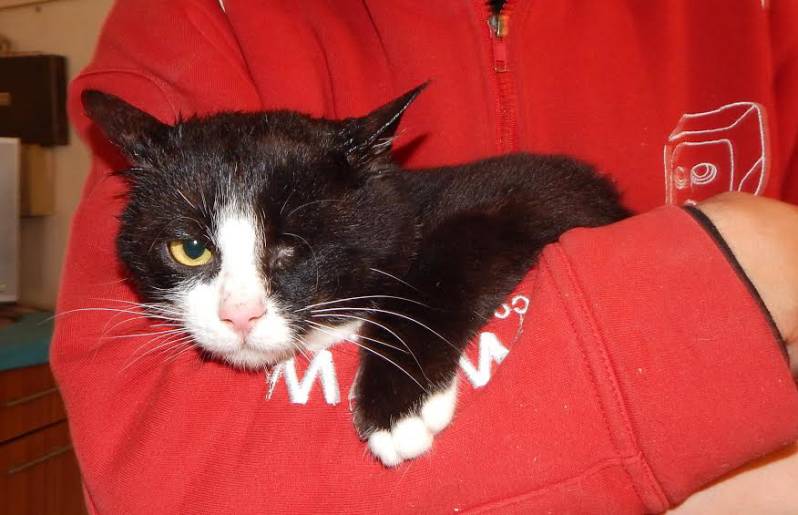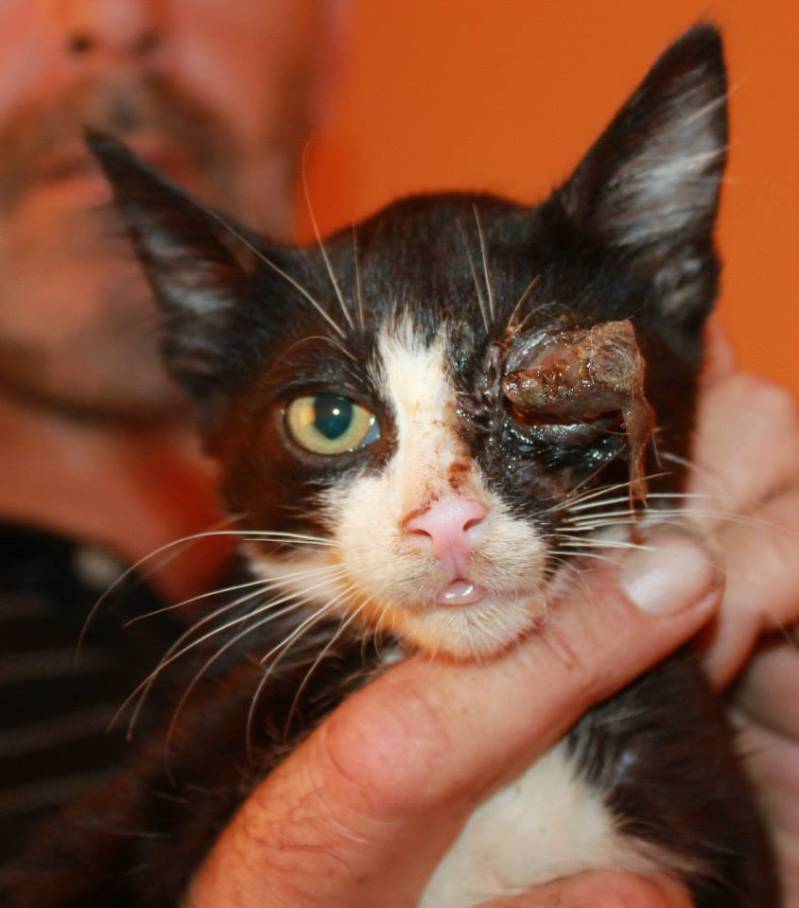 Albert is gevonden op 28 juli 2015 in het stadscentrum, in een gebied waar veel katten en kittens zijn. Albert had duidelijk een oogletsel opgelopen en een gescheurde oogbol. Hij was erg bang en het kostte ons een week om hem eindelijk te vangen.